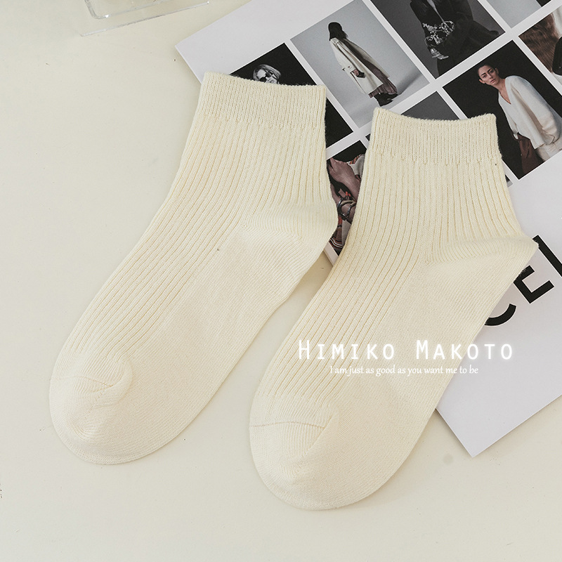 가을과 겨울 더블 바늘 코튼 스트립 얕은 입 짧은 양말 일본 하라주쿠 JK 로리타 여성 양말 도매 사계절스토어 가기