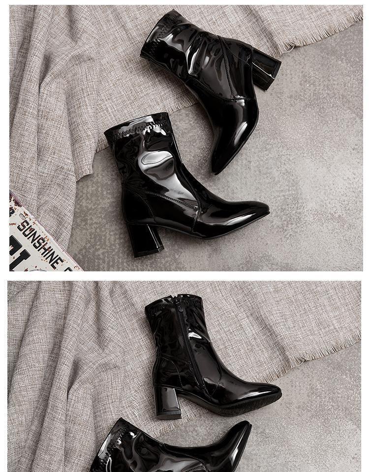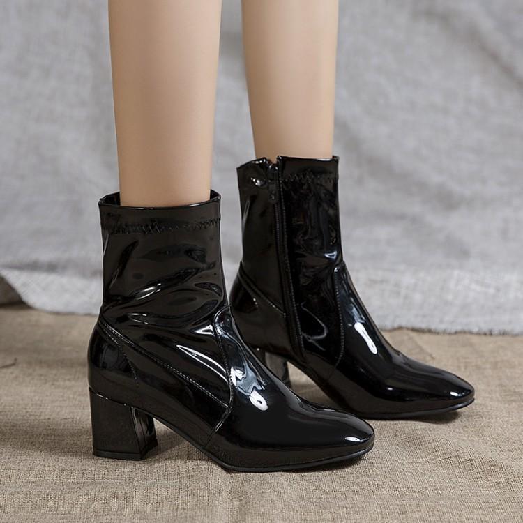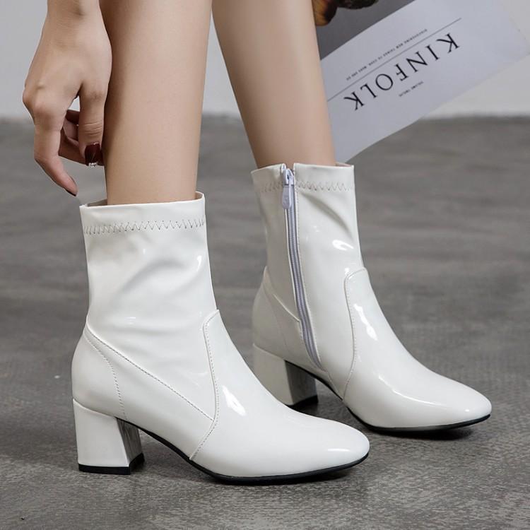 20222022 새로운 영국 스타일 화이트 쇼트 부츠 여성용 사이드 지퍼 하이힐 마틴 부츠 두꺼운 굽 가죽 부츠 밝은 가죽 탄성