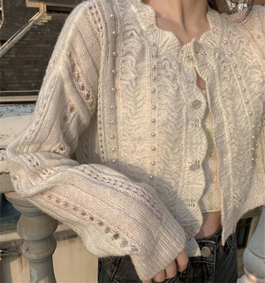 모헤어 젠틀 스타일 달콤한 중공 카디건 코트 여성용 2022 봄과 여름 짧은 페르시 꽃잎 니트 탑스토어 가기