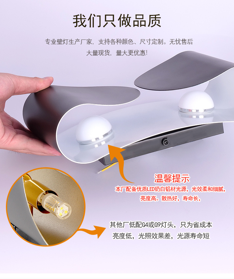 북유럽 디자이너 모델룸 침실 침대 옆 LED 벽등 창의적인 거실 스테인리스 실내 계단등