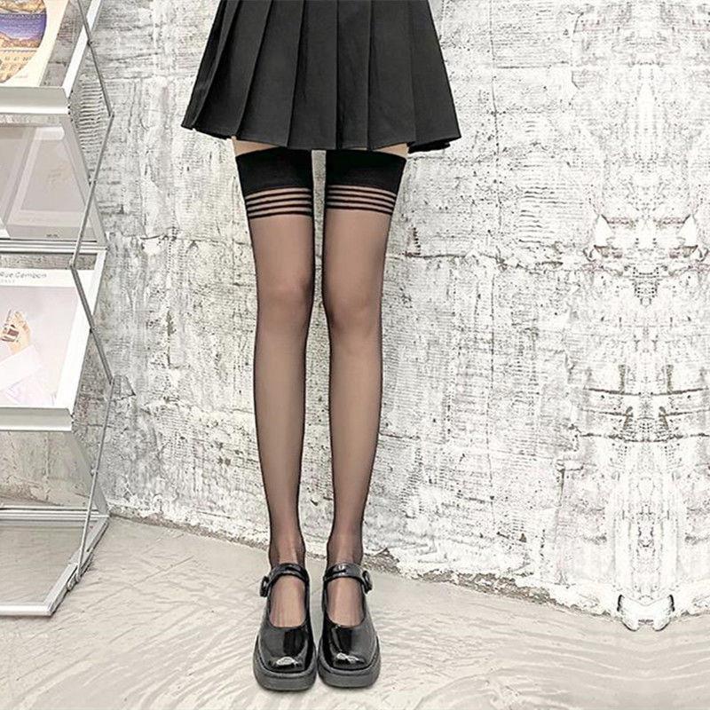 긴 튜브 실크 스타킹 여성용 빨간테 블랙 실크 여성용 하이 튜브 오버 더 무릎 양말 블랙 섹시 퓨어 여름 허벅지 초박형 미끄럼 방지스토어 가기