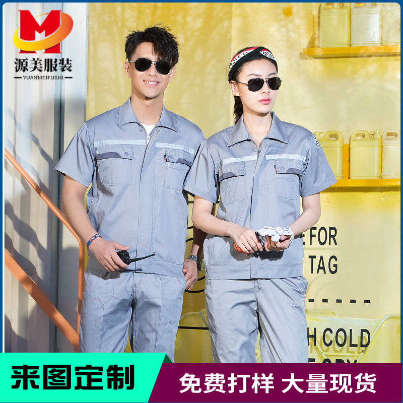 여름 정전기 방지 노동 보호 의류 세트 남자의 반팔 전기 용접 전원 자동차 수리 노동자 오일 워크샵 이중 반사 스트립 작업 의류스토어 가기