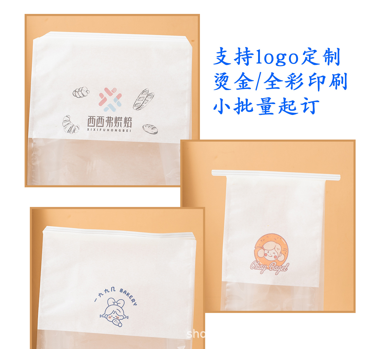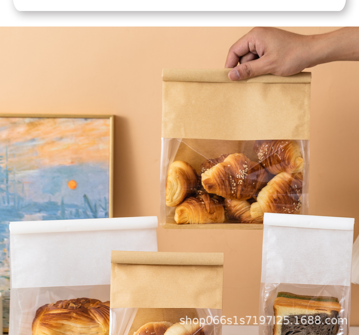 토스트 백 와이어 컬 빵 가방 창 자체 밀봉 웨스트 포인트 가죽 면 종이 가방 450g 토스트 백 로고