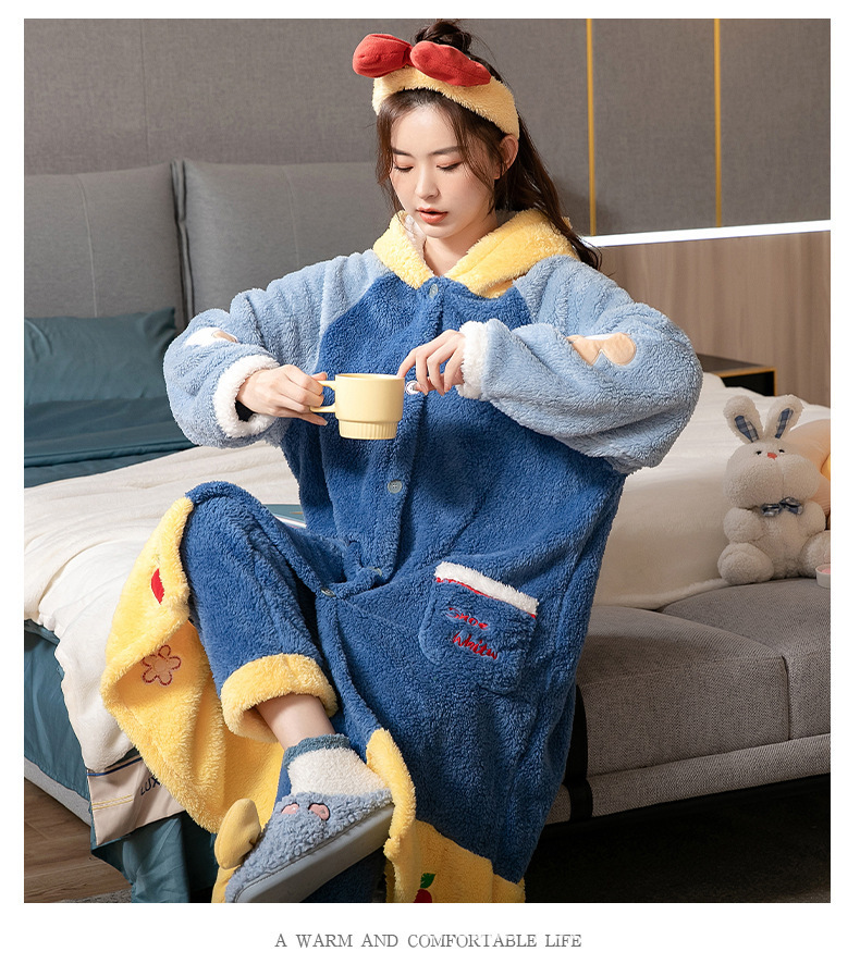 2022 잠옷 여자의 겨울 산호 양털 아웃웨어 가정 옷 두꺼운 후드 만화 백설 공주 잠옷