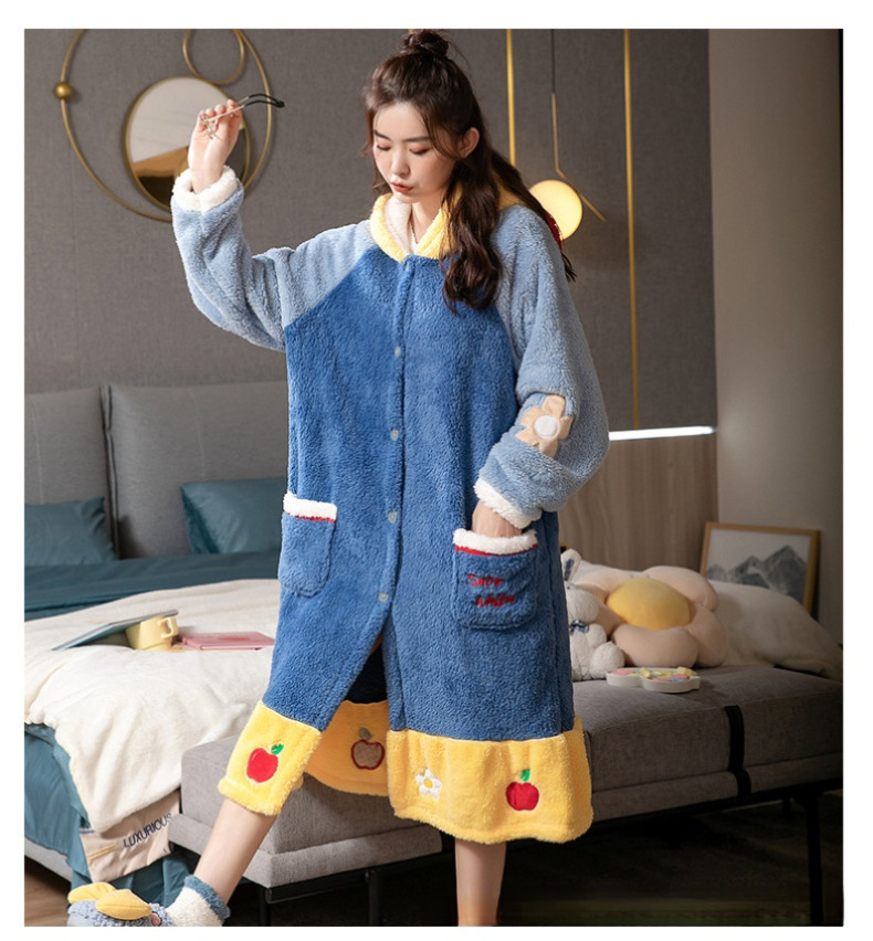 2022睡衣女冬季珊瑚绒可外穿家居服加厚连帽卡通白雪公主睡袍