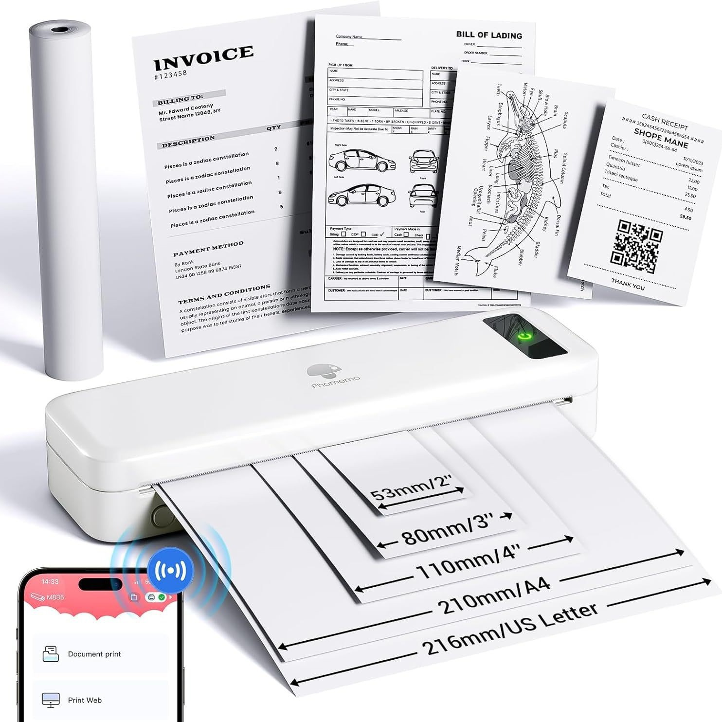Phomemo M08F 작은 미니 열 프린터 잉크 무료 사무실 문신 휴대용 A4 잘못된 질문 프린터스토어 가기