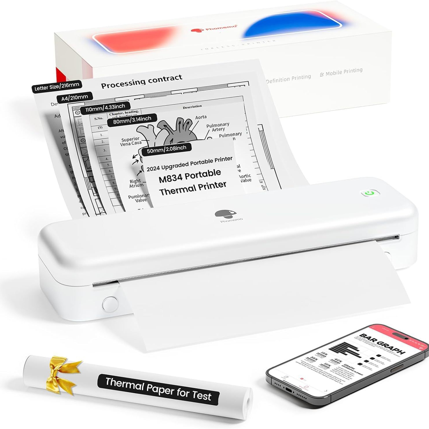Phomemo M08F 작은 미니 열 프린터 잉크 무료 사무실 문신 휴대용 A4 잘못된 질문 프린터