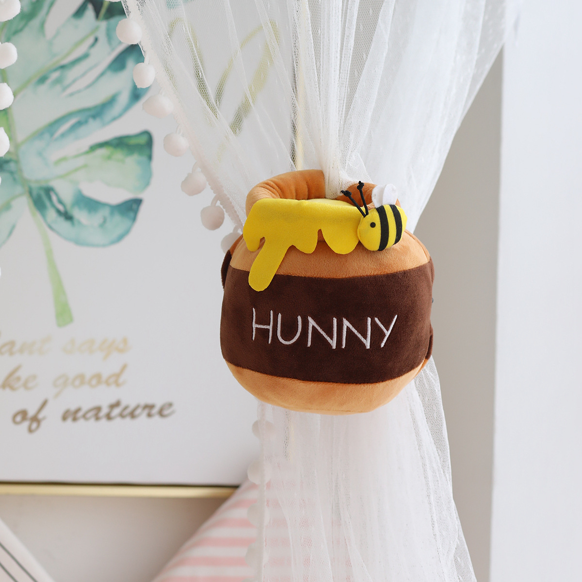 귀여운 창조적 인 꿀 냄비 꿀벌 퍼프 노란 곰 만화 인형 레이스 업 어린이 방 장식 커튼 버클 스트랩스토어 가기