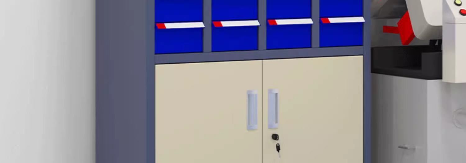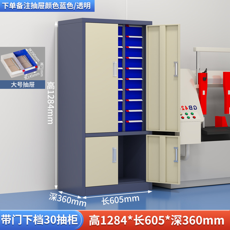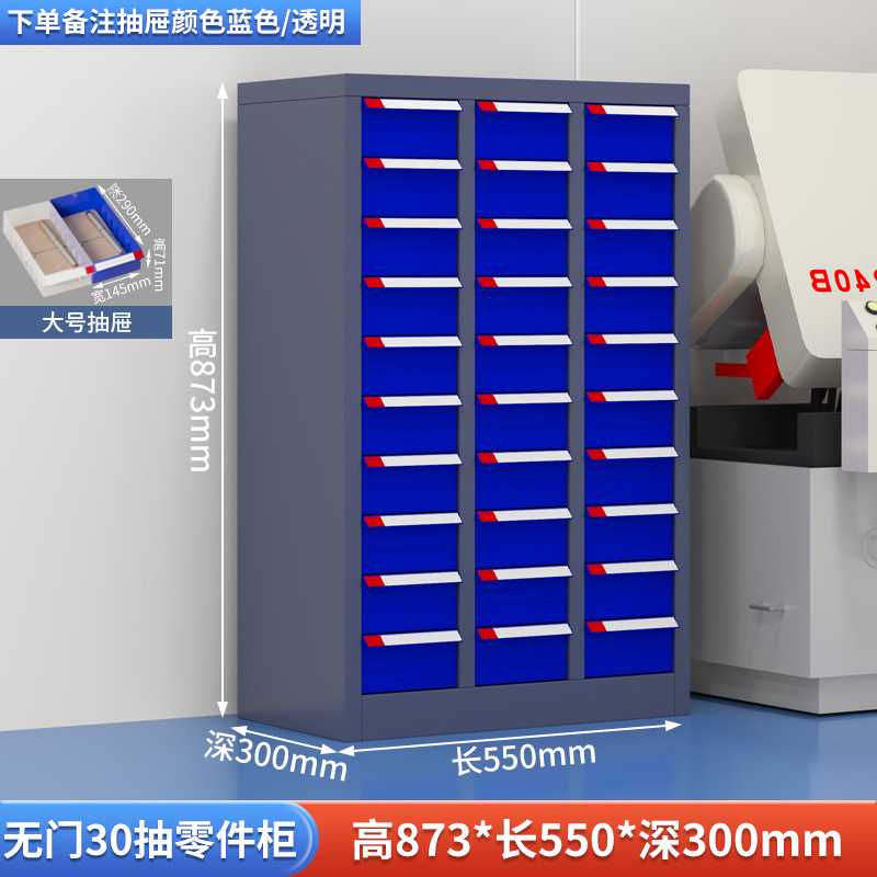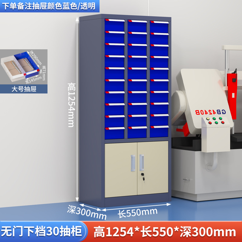 • 서랍 30개(투명/파란색) 문 없음 + 하부 파일