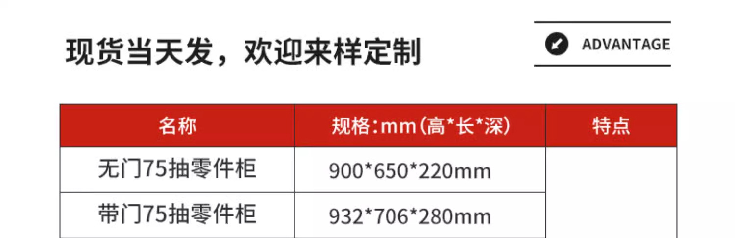부품 캐비닛 서랍형 하드웨어 도구 캐비닛 75 나사 캐비닛 금형 샘플 재료 보관 캐비닛 전자 부품 캐비닛