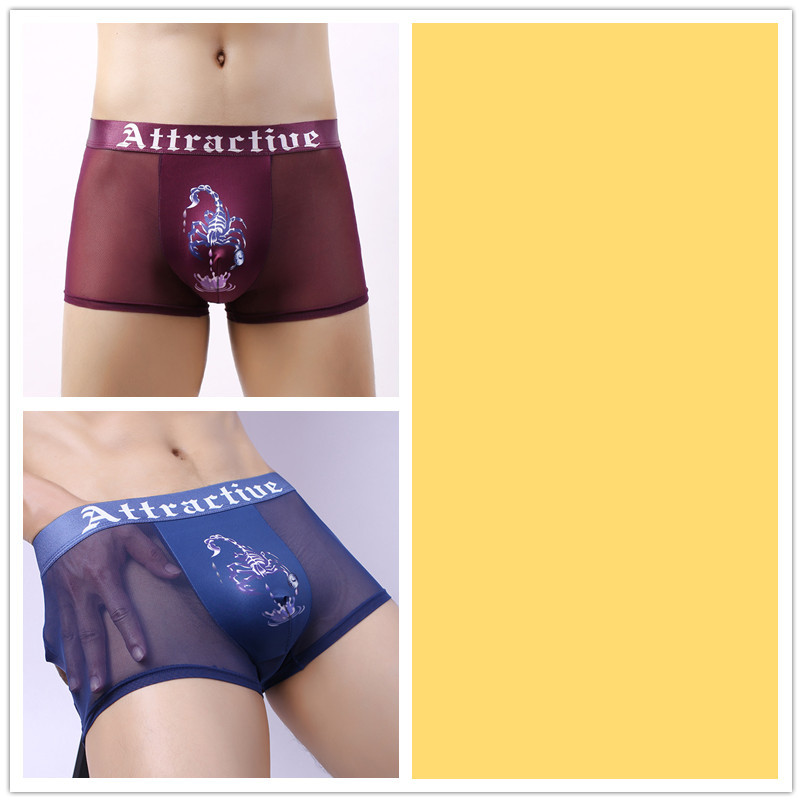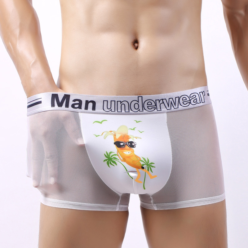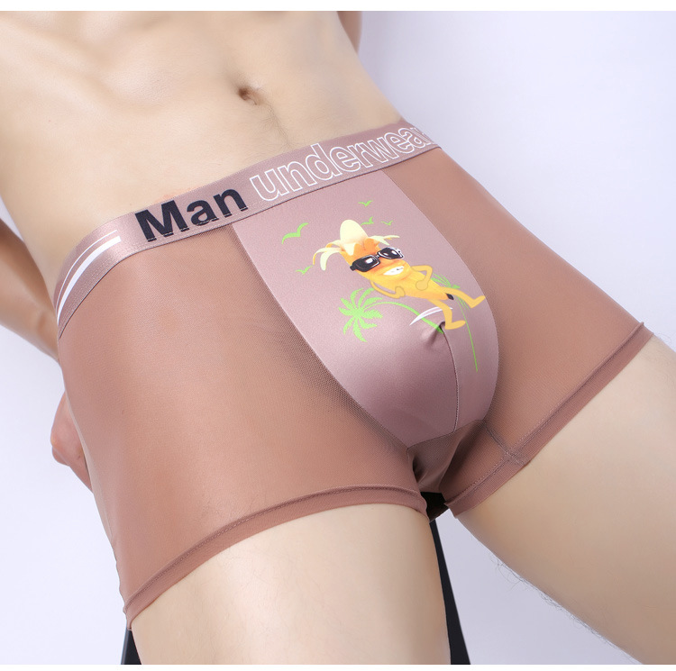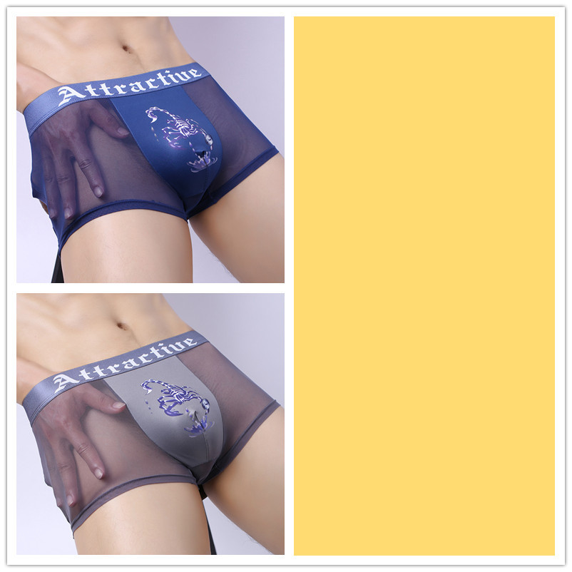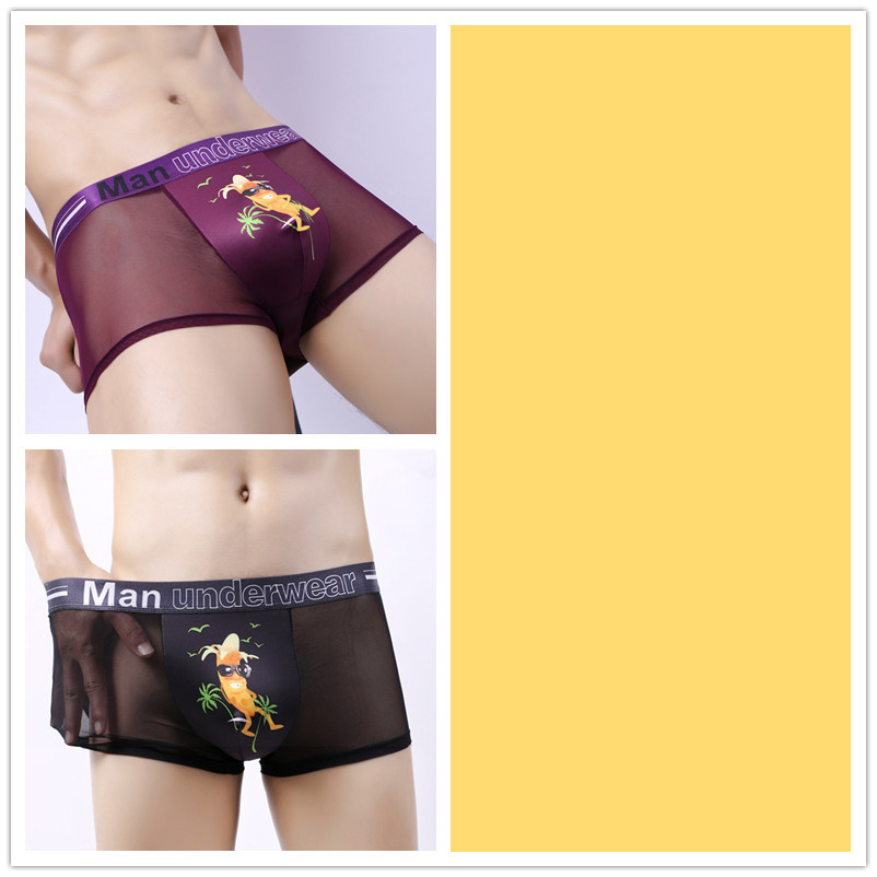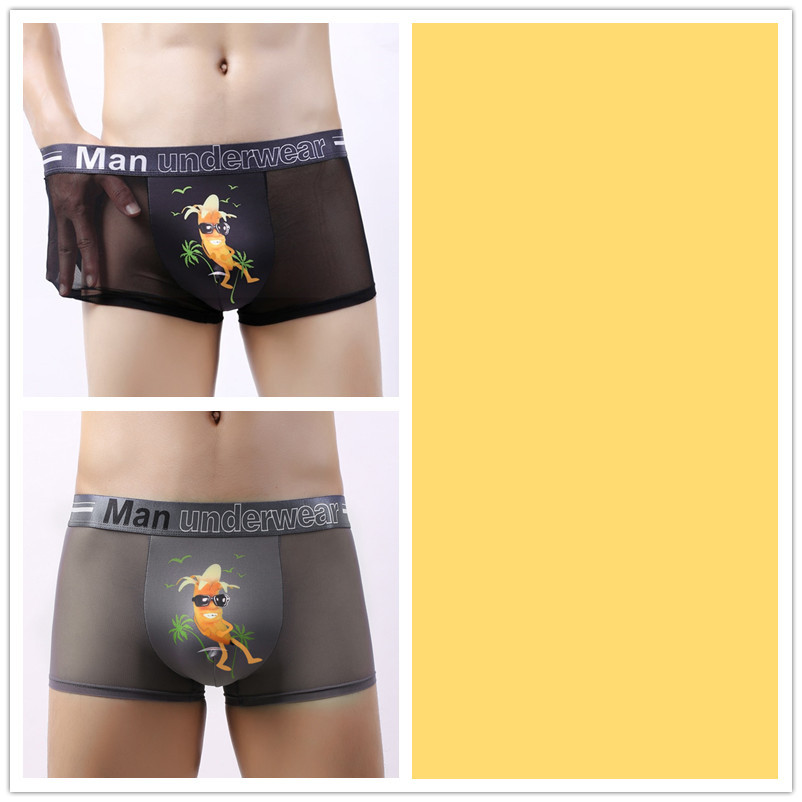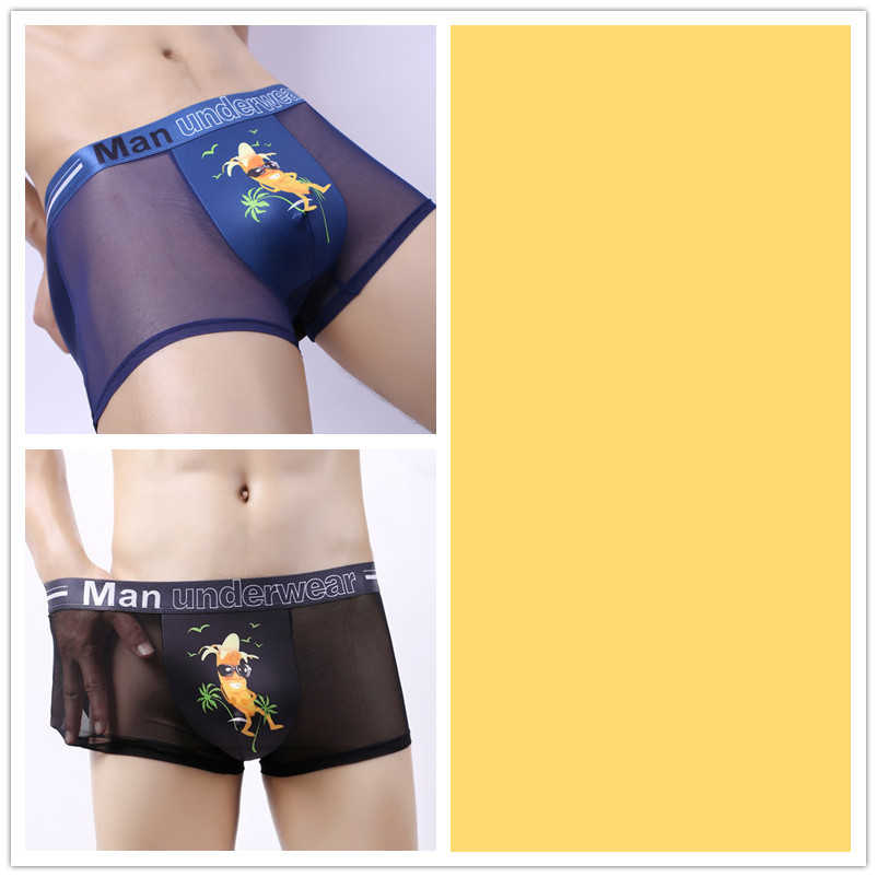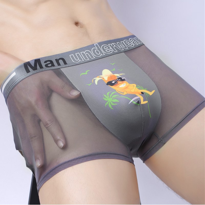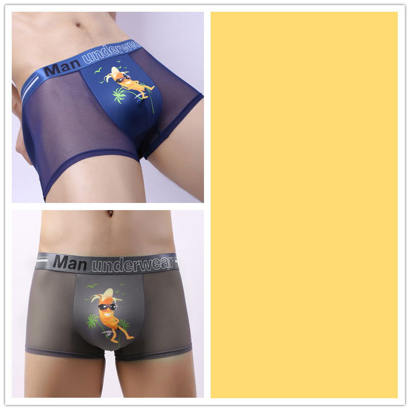 새로운 얇은 속옷 남자의 아이스 실크 거즈 속건 섹시 투명 복서 반바지 플러스 사이즈 통기성 복서 반바지