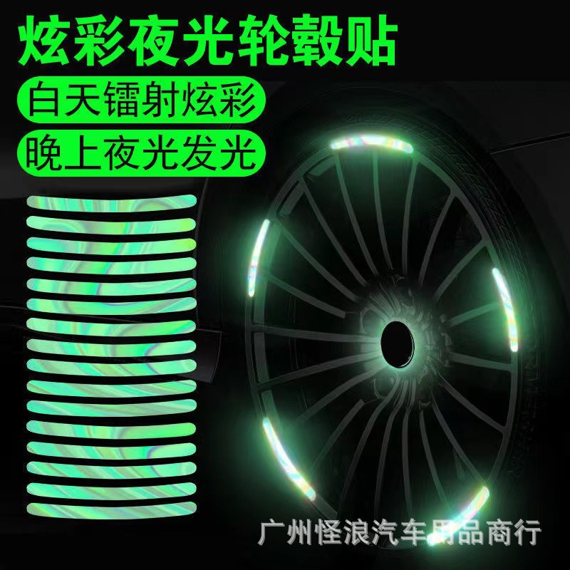 자동차 휠 허브 다채로운 레이저 발광 휠 허브 스티커 자전거 오토바이 전기 자동차 발광 스티커 쉐이크 톤 동일스토어 가기