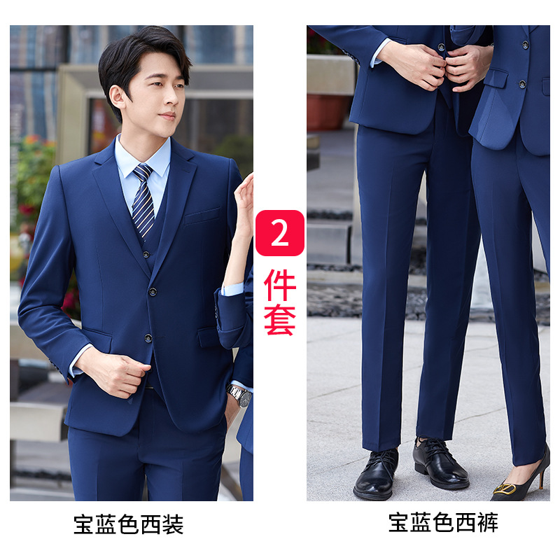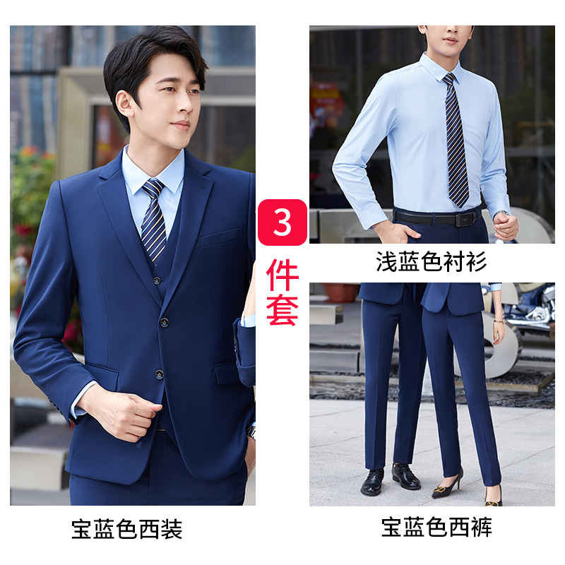 • 남자 사파이어 블루 세트 + 라이트 블루 셔츠 + 사파이어 블루 팬츠
