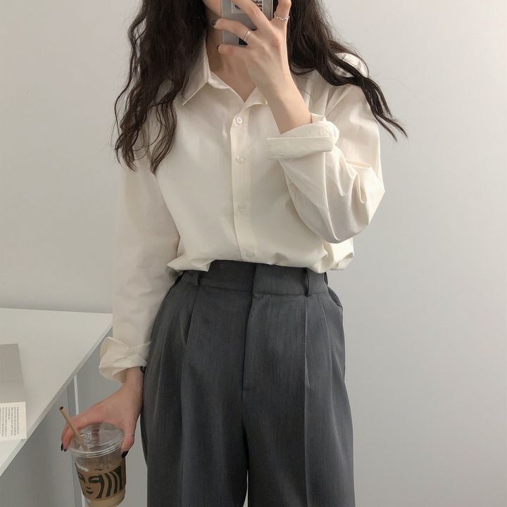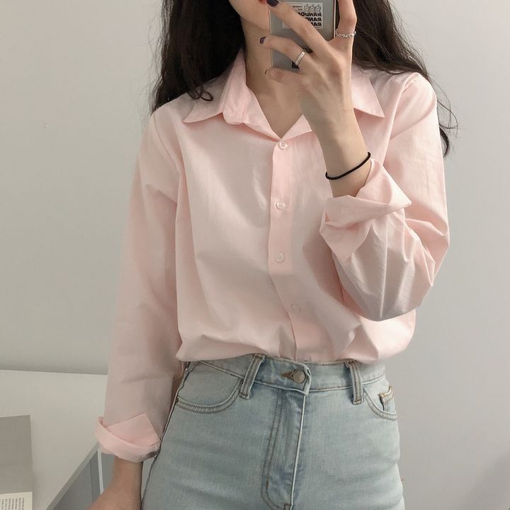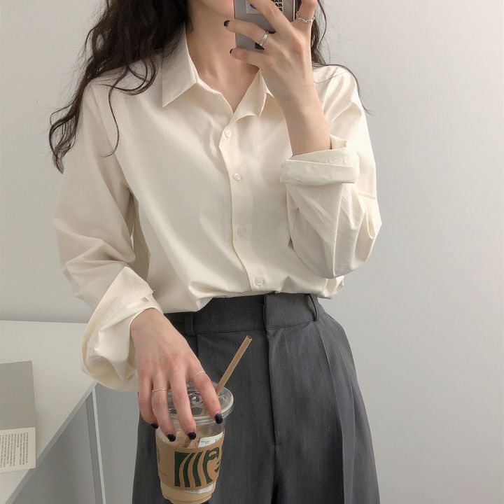 여성용 한국 디자인 센스 작은 새 한국 긴팔 셔츠 여성용 디자인 센스 틈새 모든 매치 캐주얼 셔츠스토어 가기