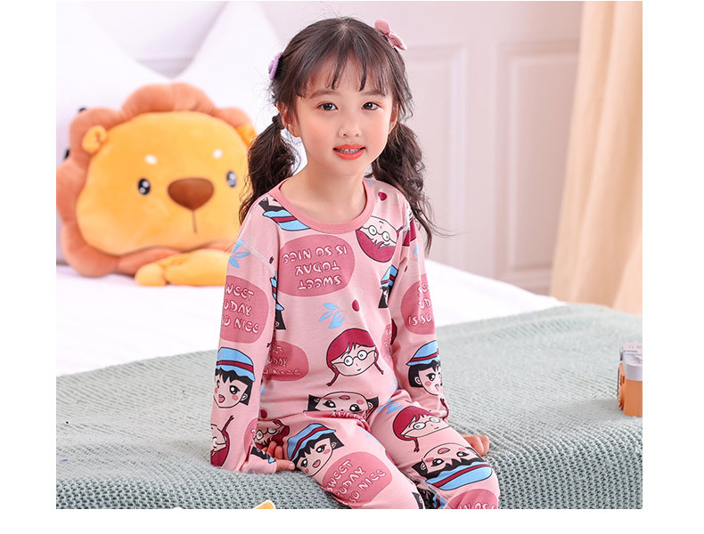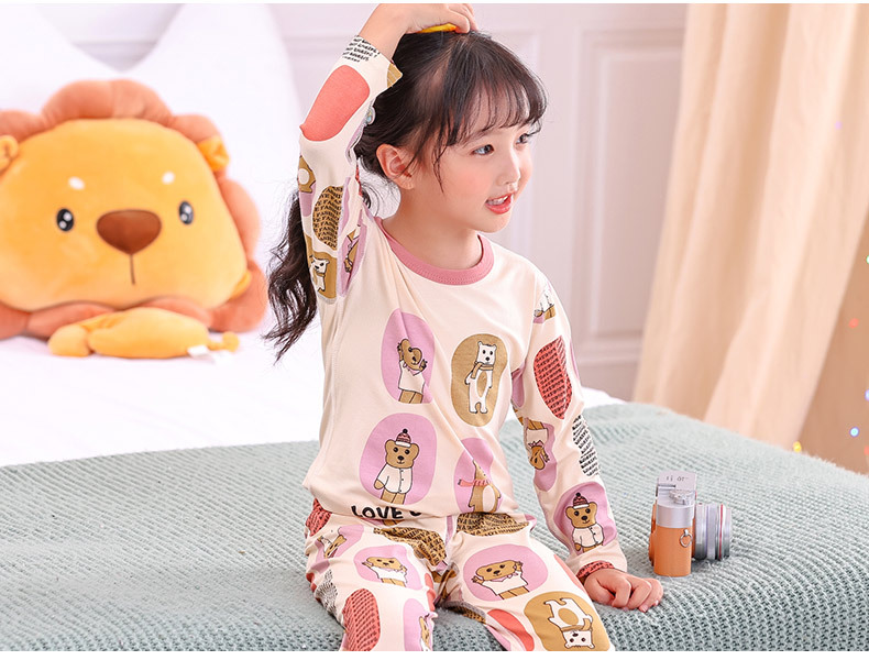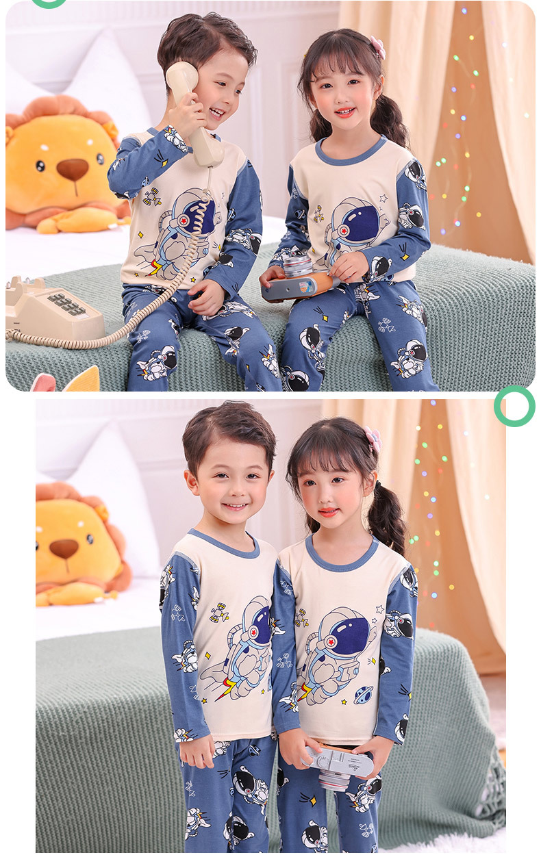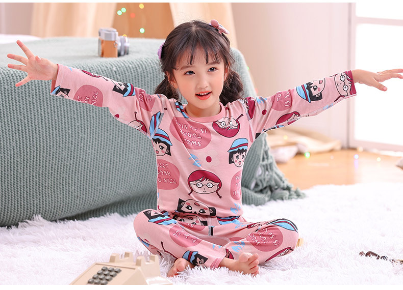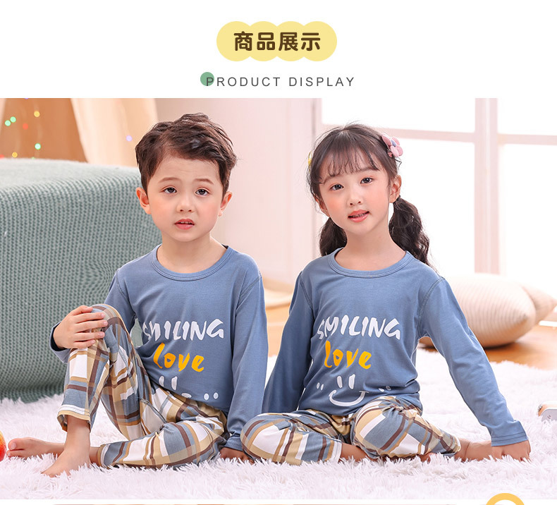 어린이 모달 가정 의류 2025 새로운 소년과 소녀 봄 잠옷 기본 세트 아기 가을 옷과 가을 바지스토어 가기