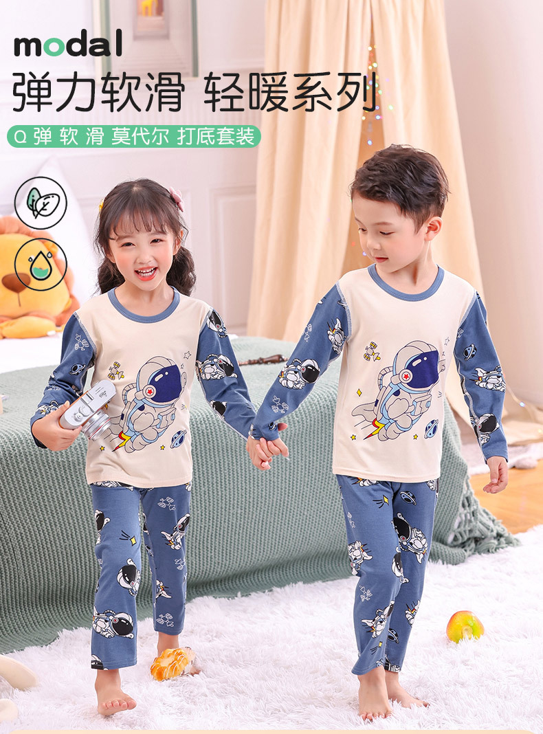 어린이 모달 가정 의류 2025 새로운 소년과 소녀 봄 잠옷 기본 세트 아기 가을 옷과 가을 바지