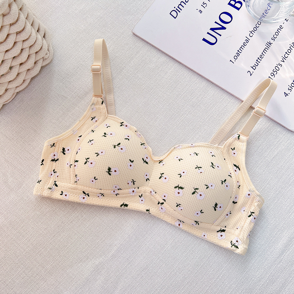 일본식 달콤한 꽃 속옷 여성용 무테 작은 가슴 모여 중학생 고등학생 얇은 여아 브래지어스토어 가기