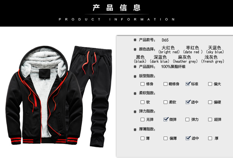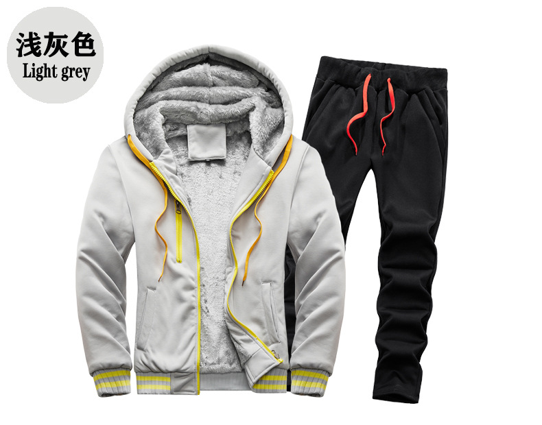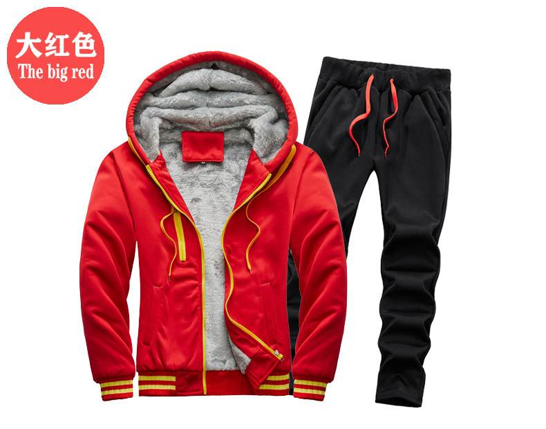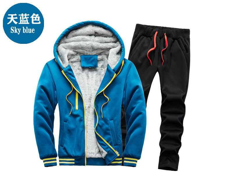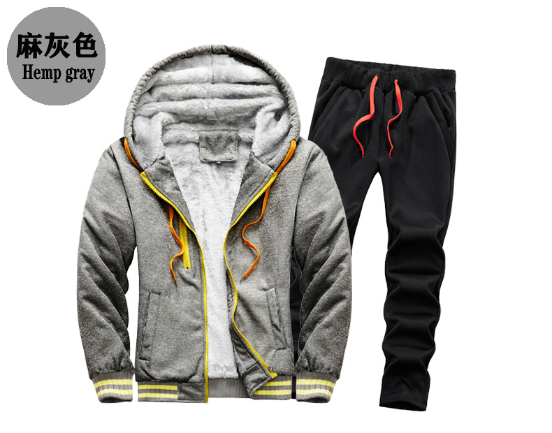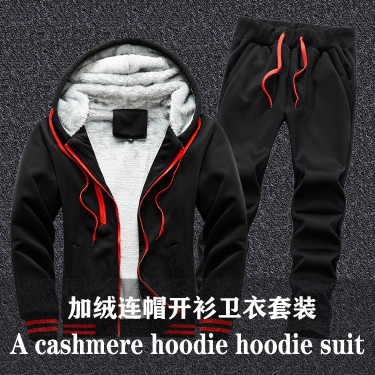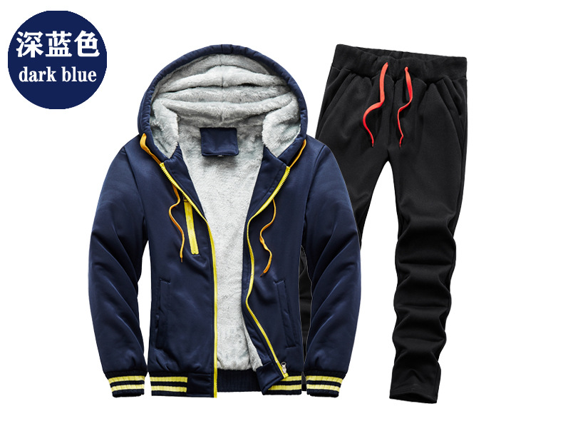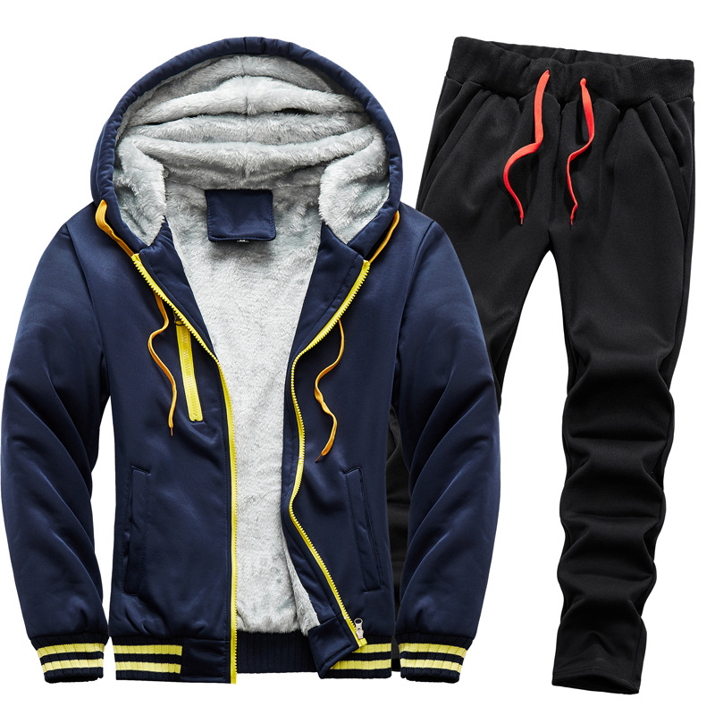 새로운 겨울 남성 패딩 기모 따뜻한 스웨터 세트 단색 운동복 플러스 사이즈 배치