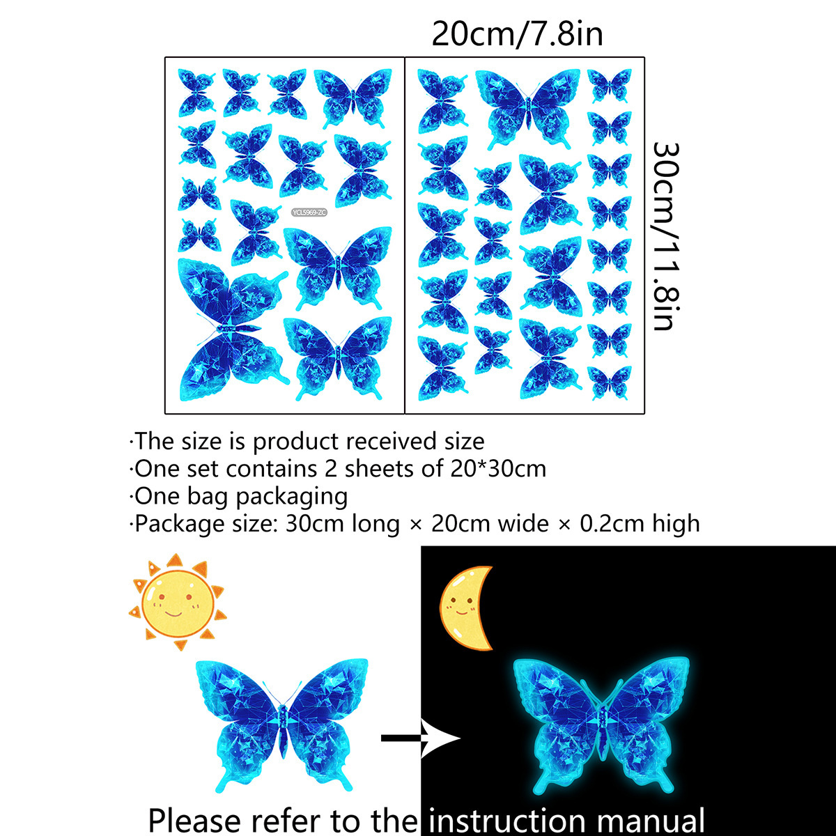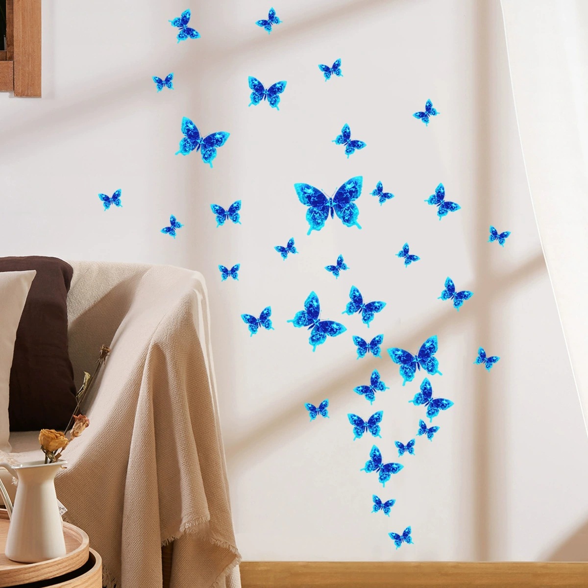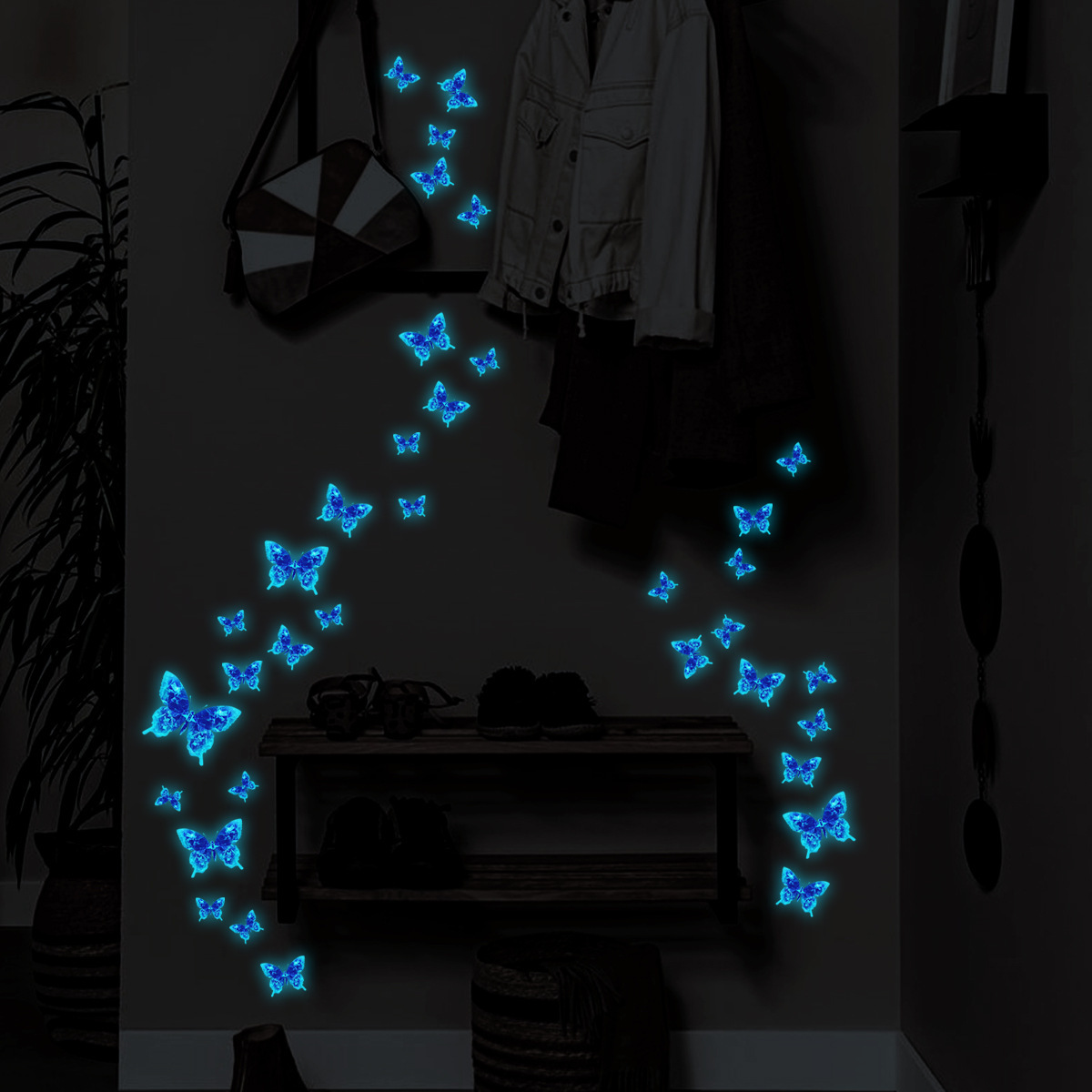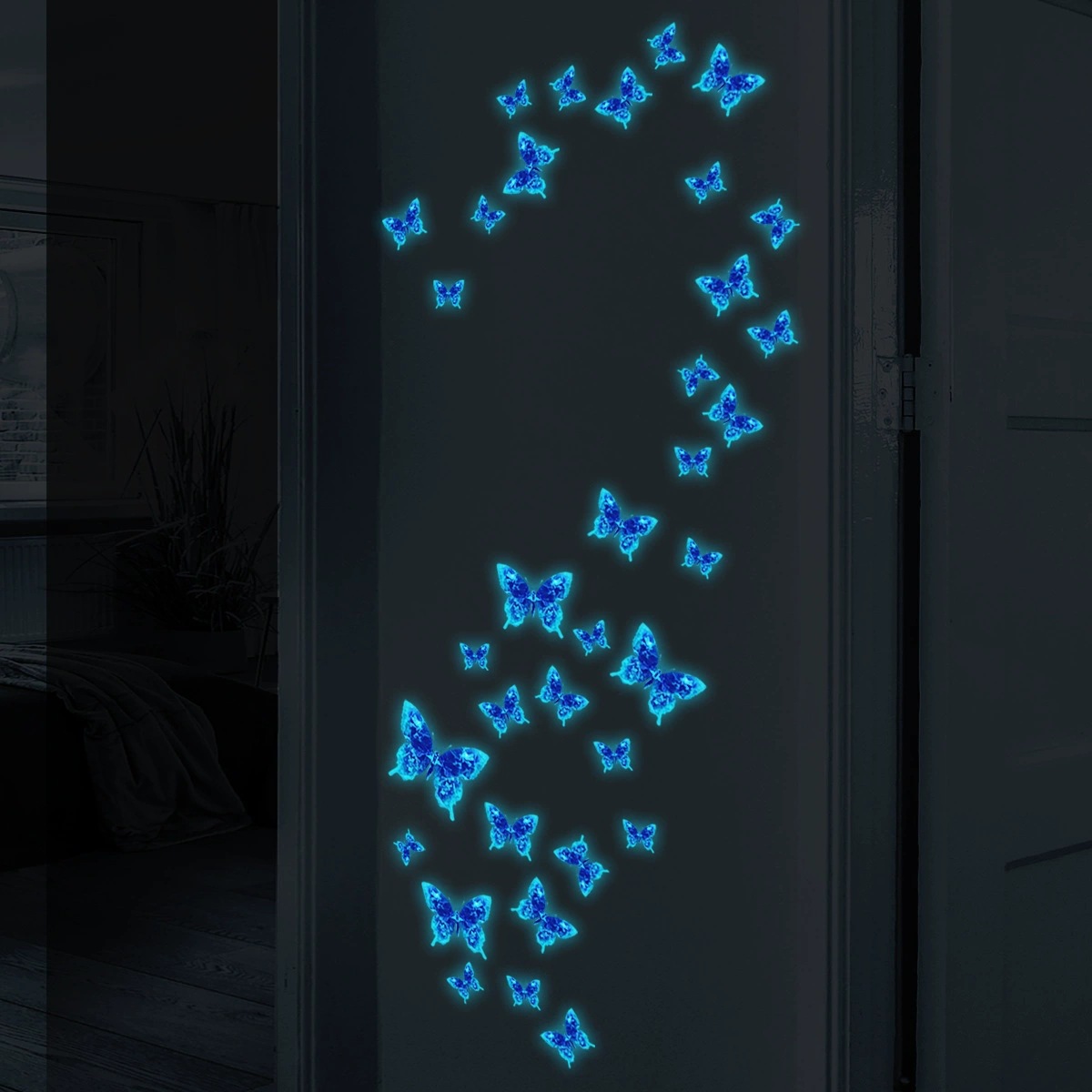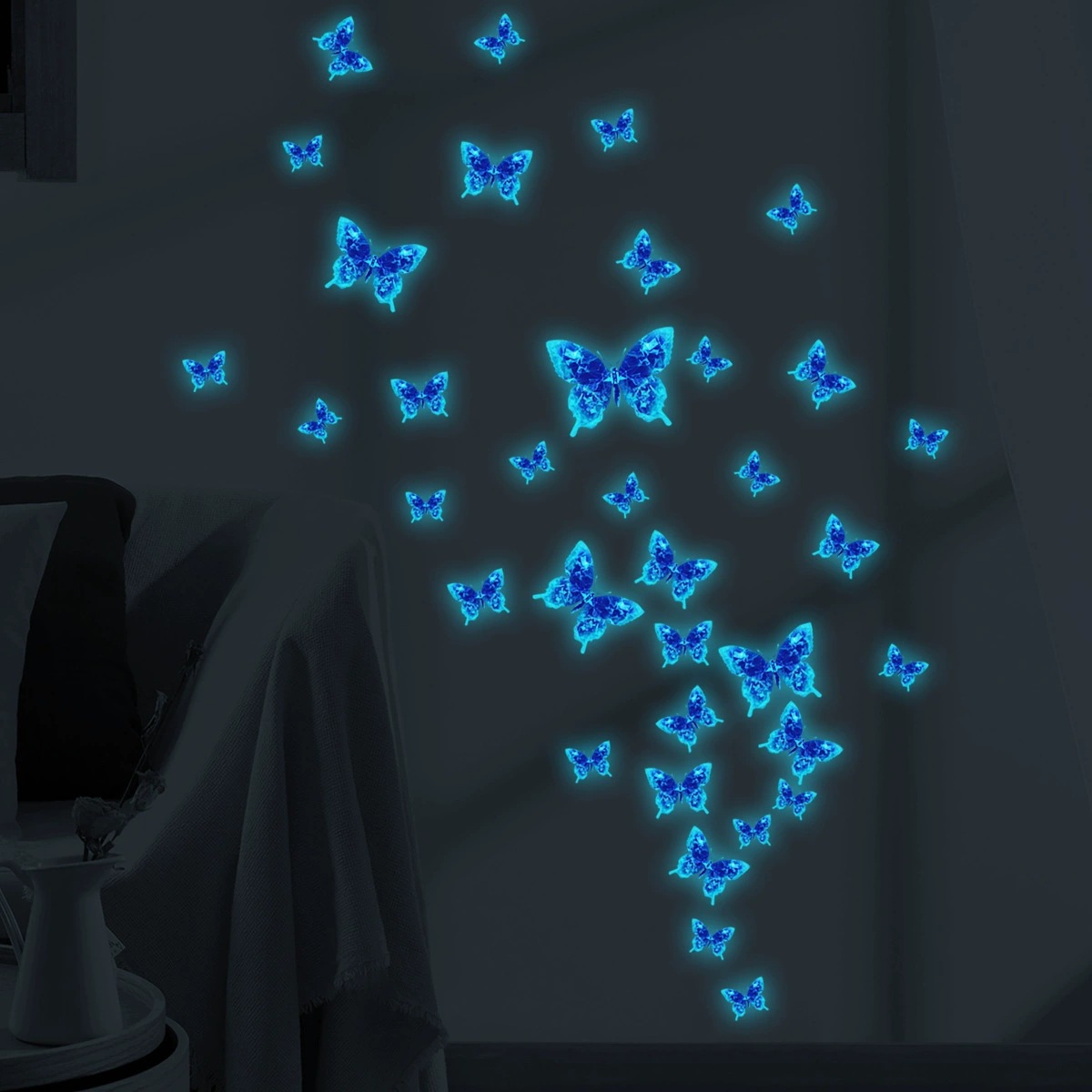 다양한 야광 작은 나비 요정 침실 거실 발광 야광 스티커 스위치 스티커 장식용 자가 접착 벽 스티커