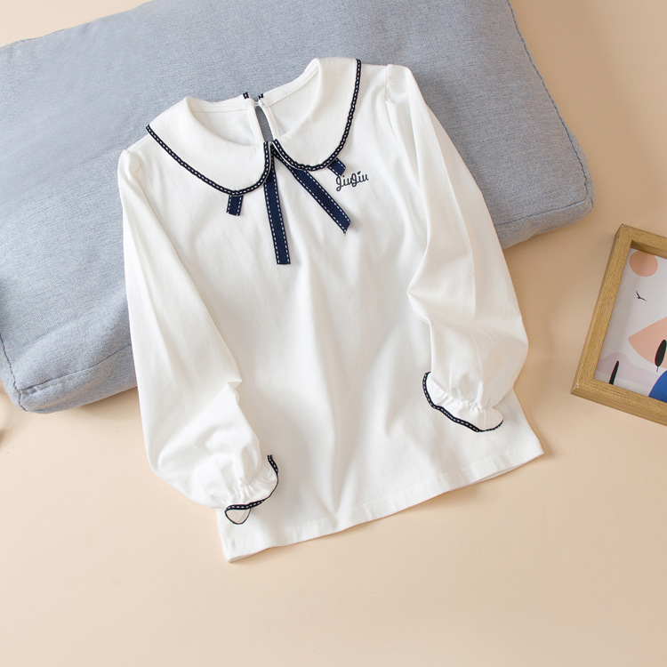 걸스 바지 셔츠 2023 봄과 가을 새 가을 어린이 긴팔 면화 탑 한국식 옷깃 인형 칼라 티셔츠스토어 가기