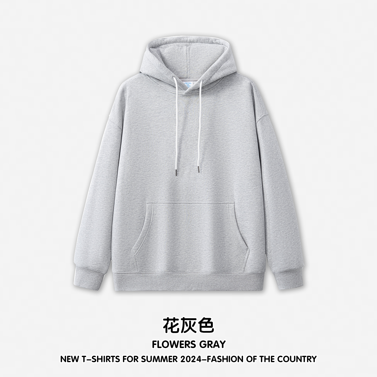 RS 남성복 | 가을/겨울 헤비 350G 플러스 벨벳 모자 솔리드 컬러웨어 남성 크로스 보더 인 타이드 브랜드 루즈 드로우 스트링 후디스토어 가기