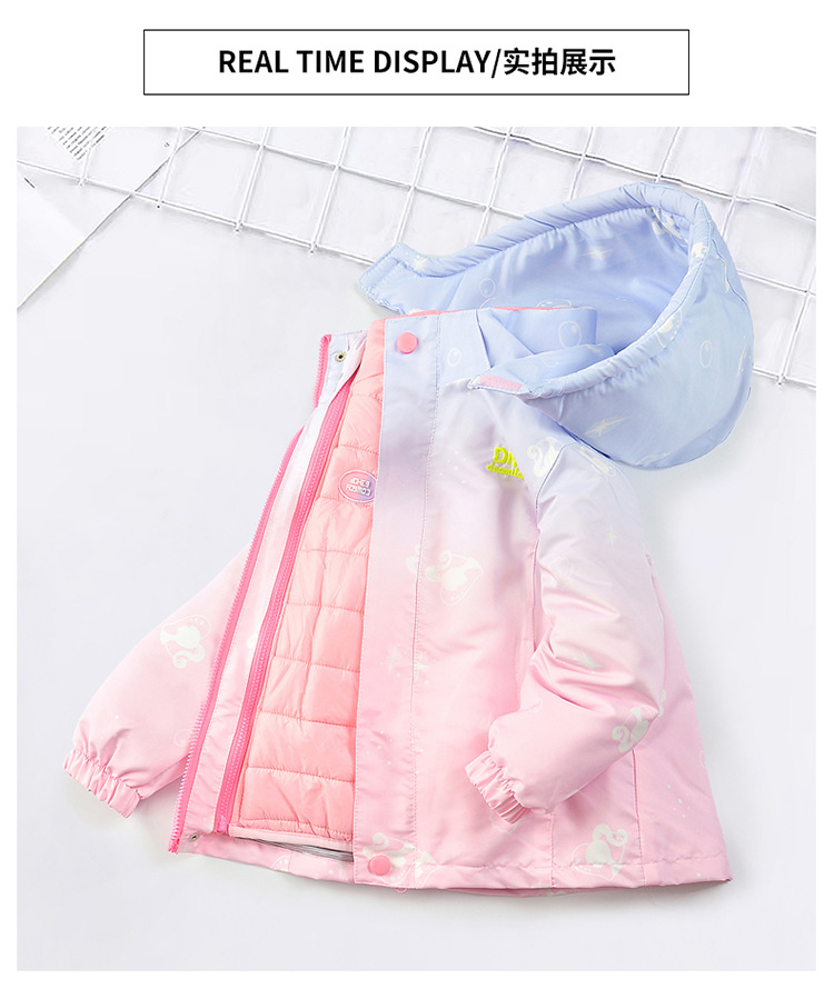 어린이 겨울옷 플러스 벨벳 안감 두꺼운 재킷 소녀용 3-in-1 탈부착 가능한 코트 2025 가을 겨울 신상 트렌드