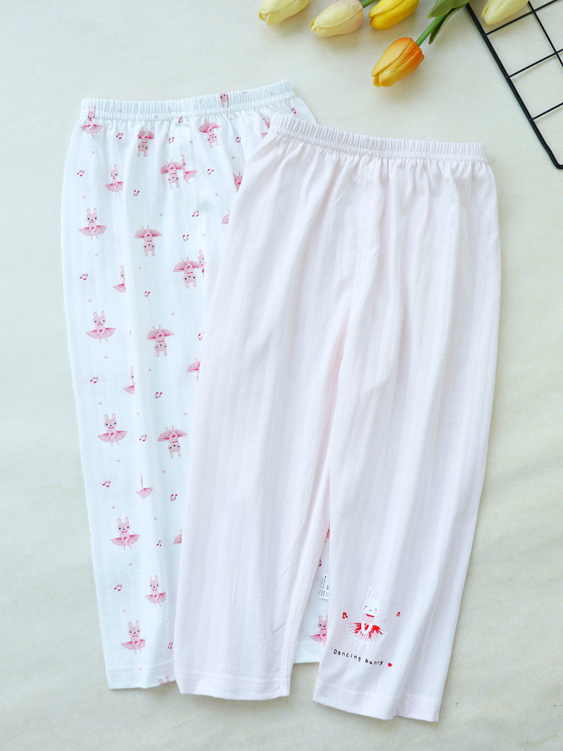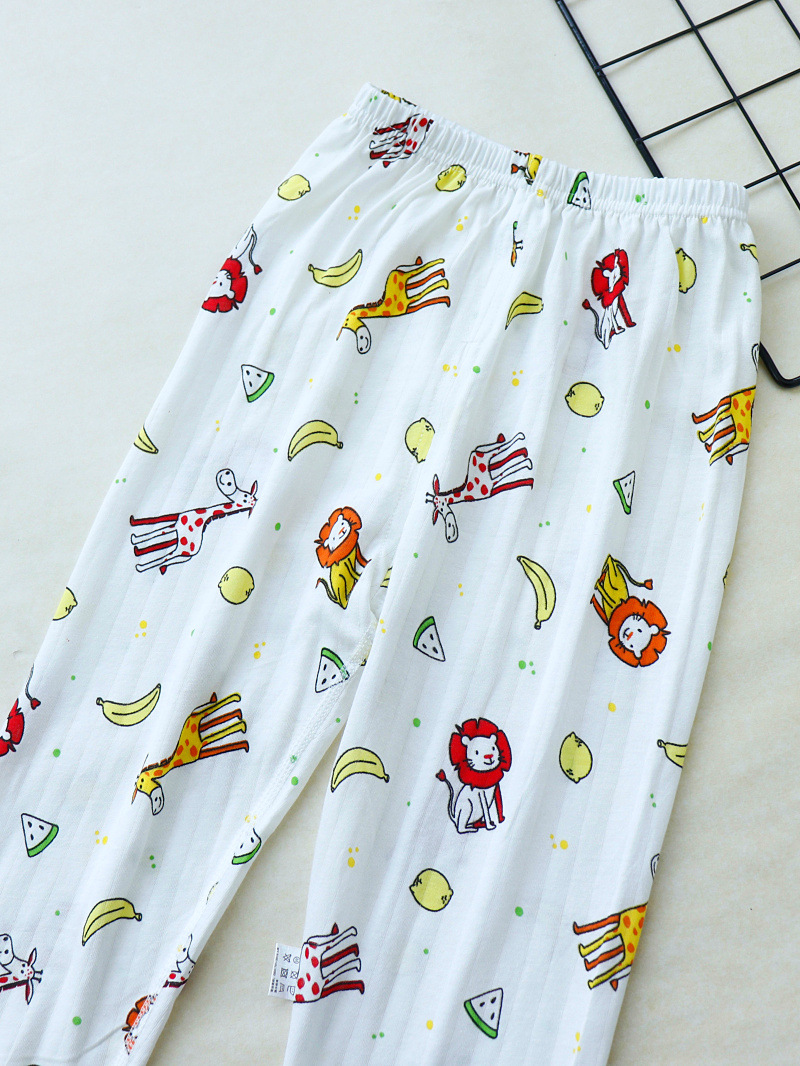 여아용 아동용 시원한 면 베이스 잠옷, 남아용 무봉제 귀여운 베이스 레깅스, 남아용 루즈한 얇은 바지, 가랑이가 열려 있음