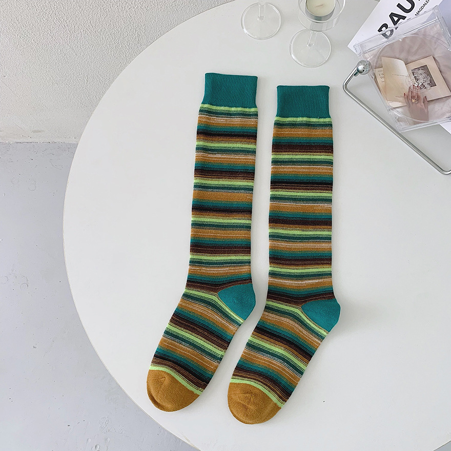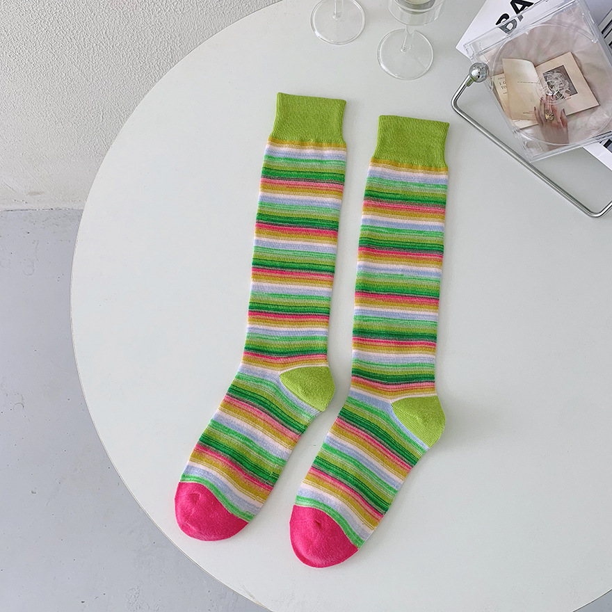 여성용 긴 양말 레인보우 카레 양말 튀김 거리 면 양말 캐주얼 스포츠 양말 유럽 상품 빨간 책 같은 스타일 인터넷 빨간 양말