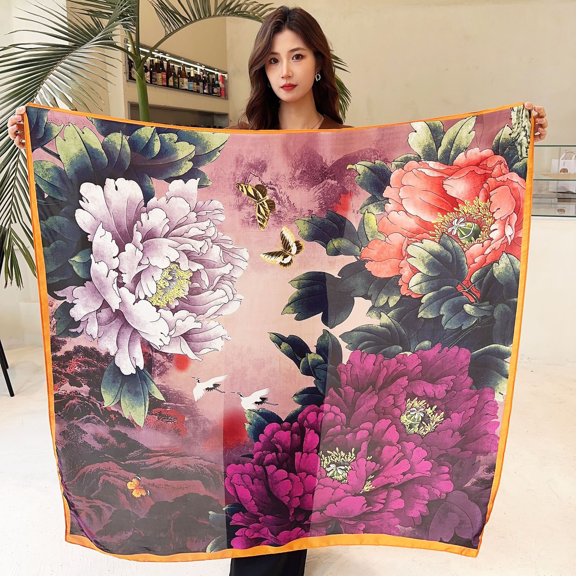 봄과 가을 신상 110×110 정사각형 스카프, 사각 무늬 새틴 프린트 실크 스카프, 르진 단조 모조 실크 헤드 스카프, 실크 스카프스토어 가기