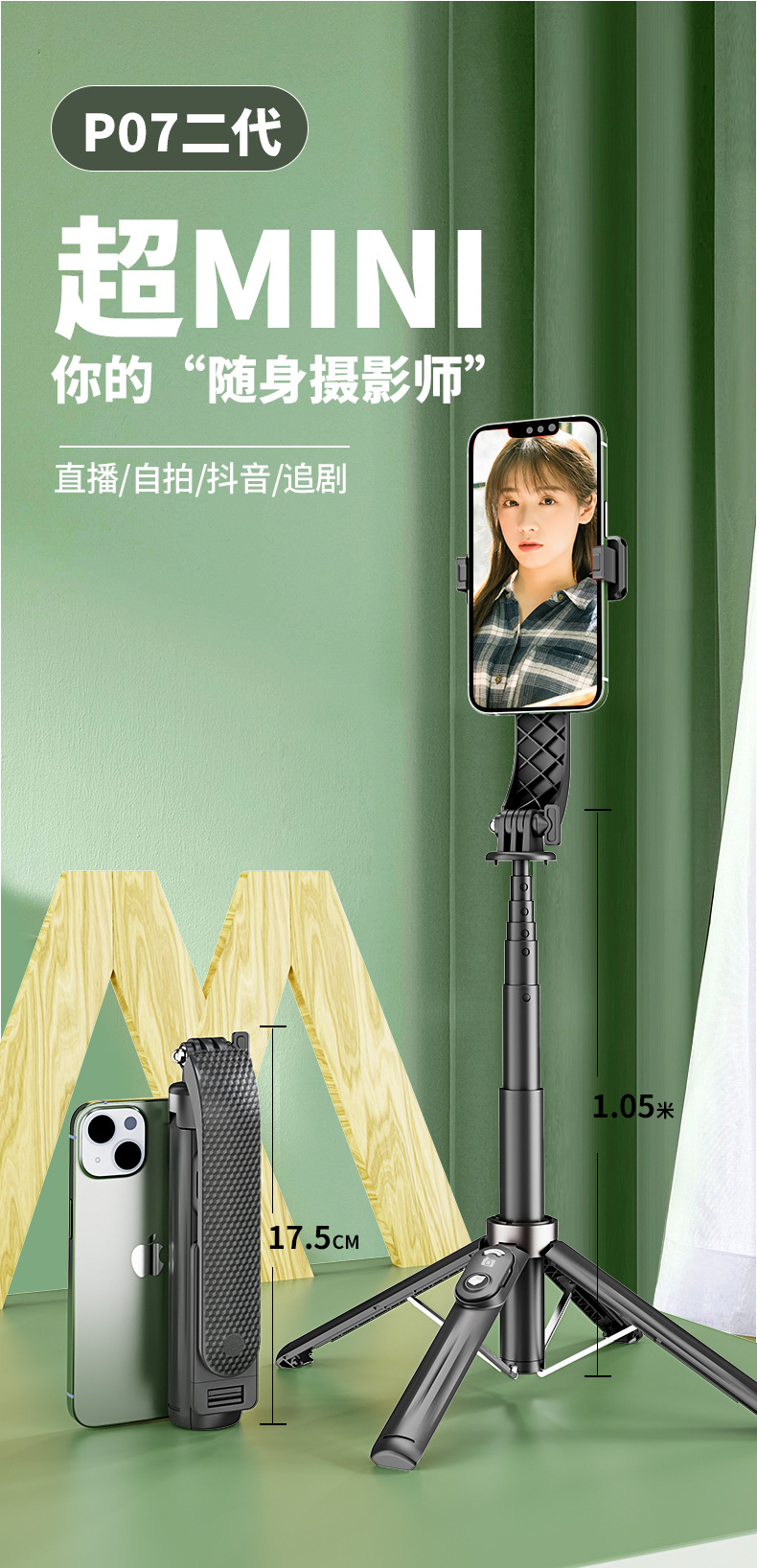 P07 2 세대 휴대 전화 셀카 봉 야외 휴대용 블루투스 라이브 방송 브래킷 손떨림 방지 개폐식 휴대 전화 홀더 셀카스토어 가기