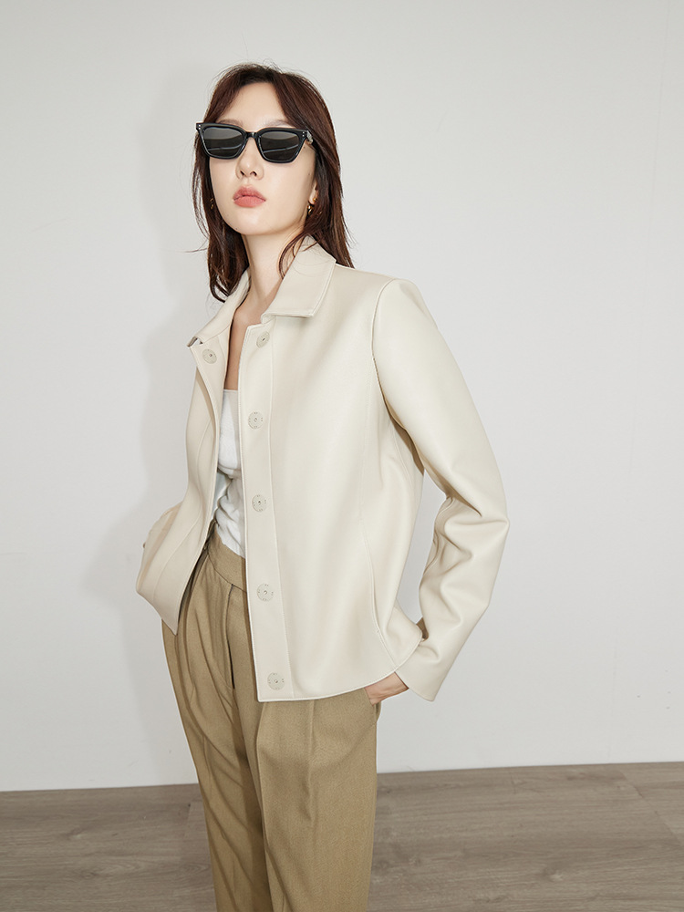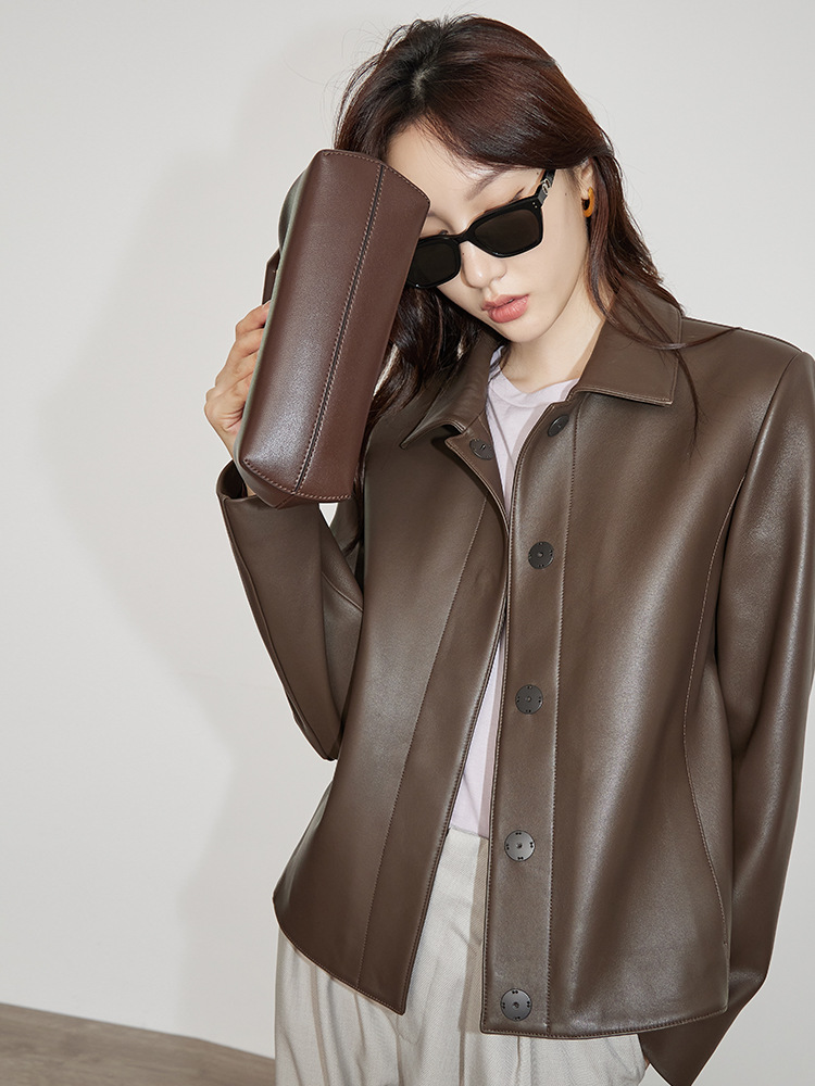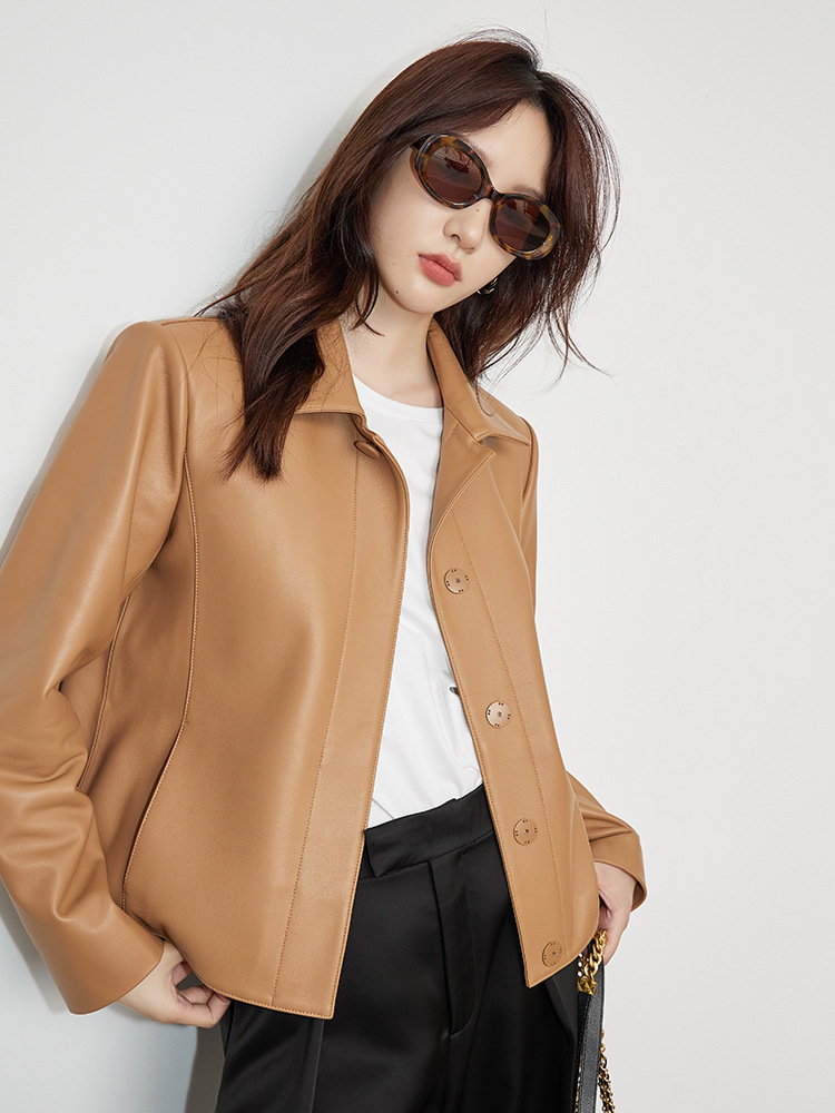 여성을위한 고품질 양피 정품 가죽 자켓 가을, 겨울 새로운 숨겨진 버튼 스페인어 양피 자켓