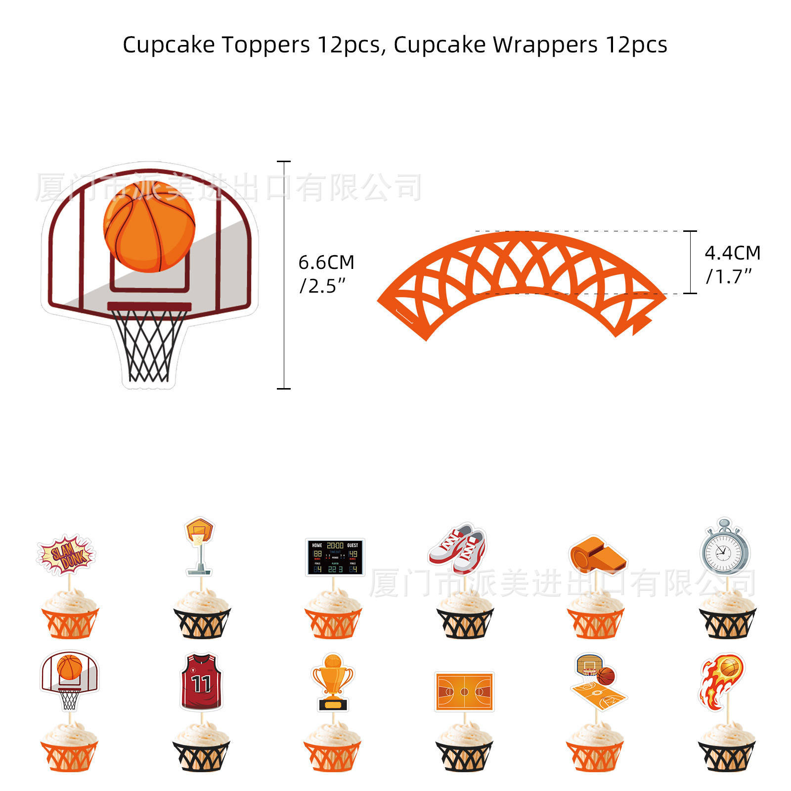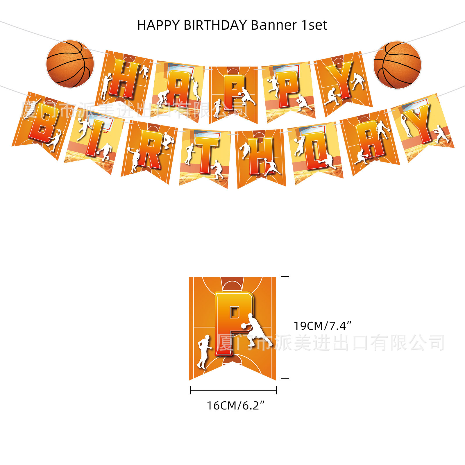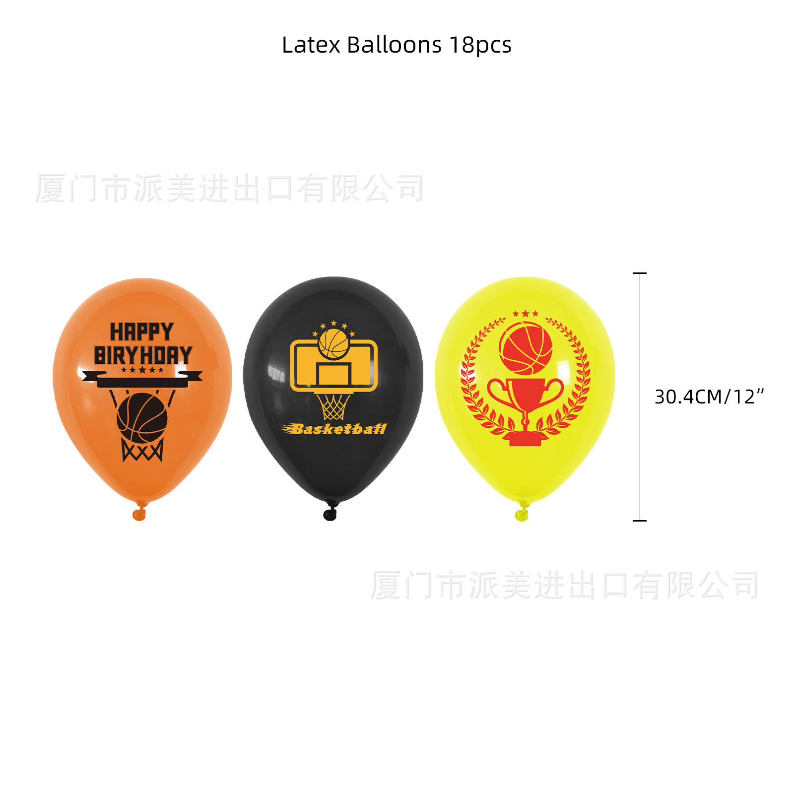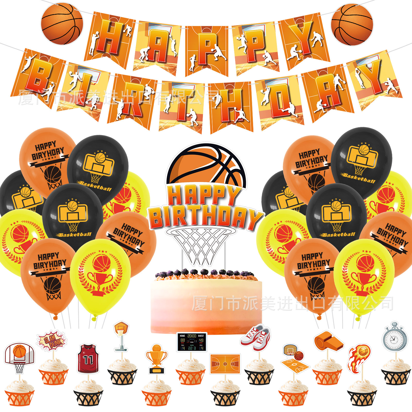 농구 테마 어린이 생일 파티 배경 장식 세트 생일 깃발 케이크 깃발 종이 끈 라텍스 풍선