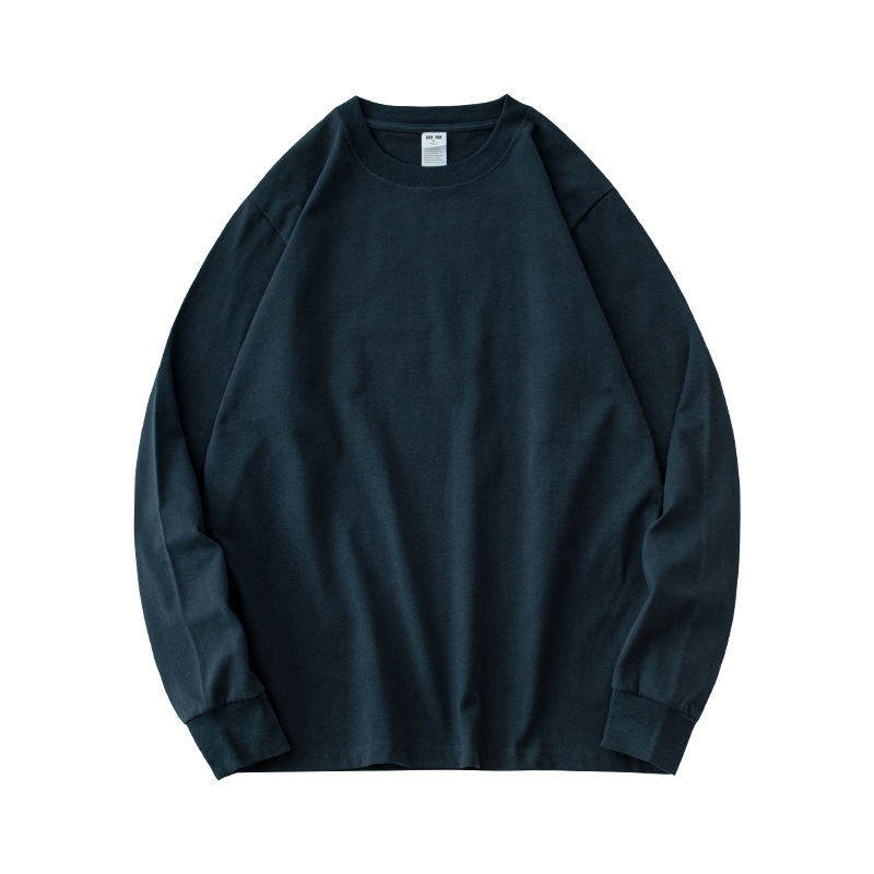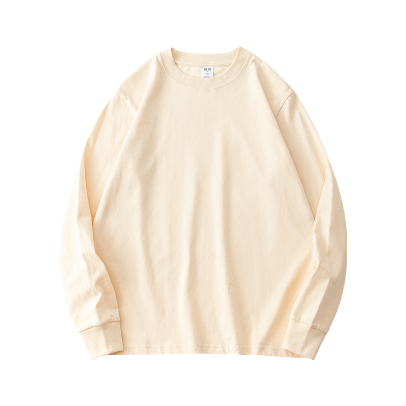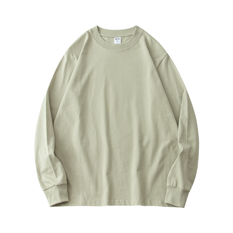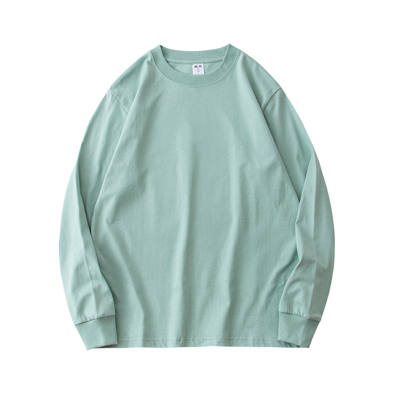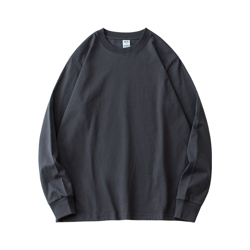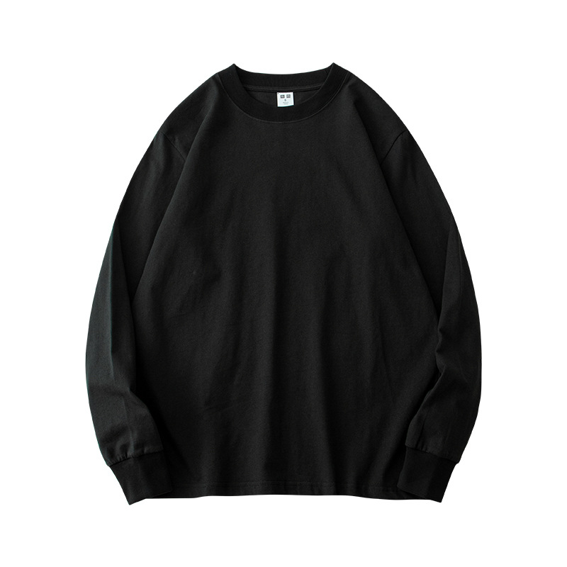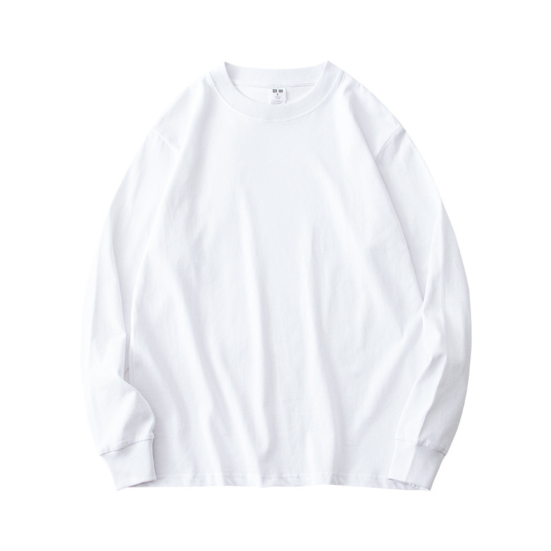 230g 긴팔 티셔츠 남성용 순면 라운드 넥 화이트 리브 라운드 넥 베이스 셔츠 일본식 십대 탑 솔리드 컬러 티셔츠스토어 가기