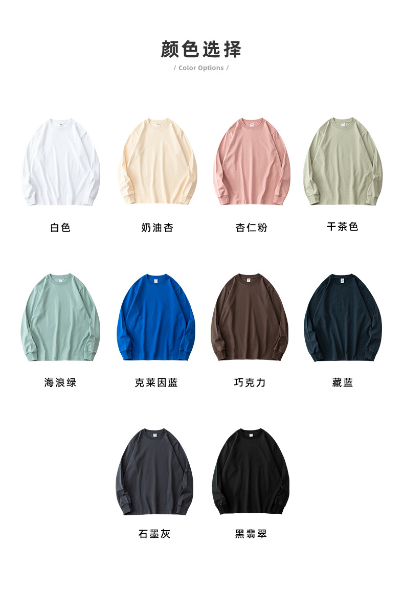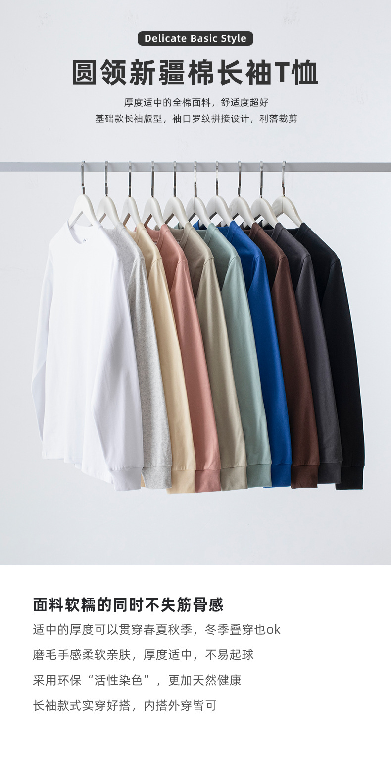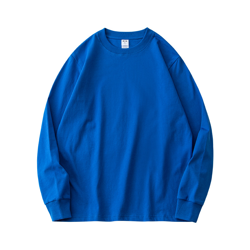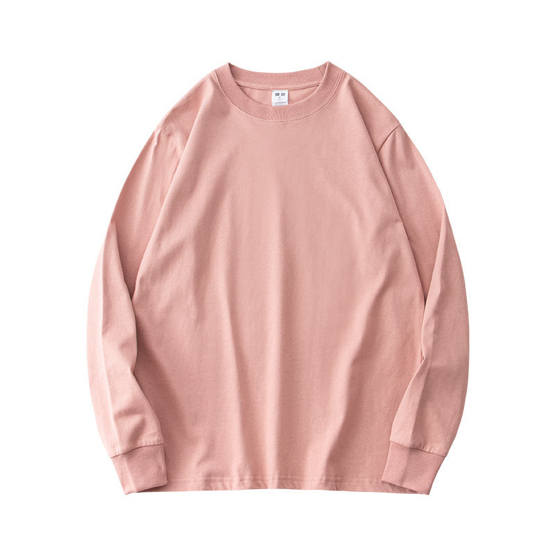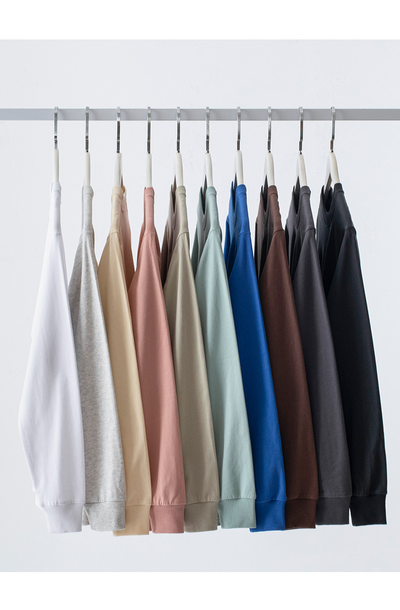 230g 긴팔 티셔츠 남성용 순면 라운드 넥 화이트 리브 라운드 넥 베이스 셔츠 일본식 십대 탑 솔리드 컬러 티셔츠스토어 가기