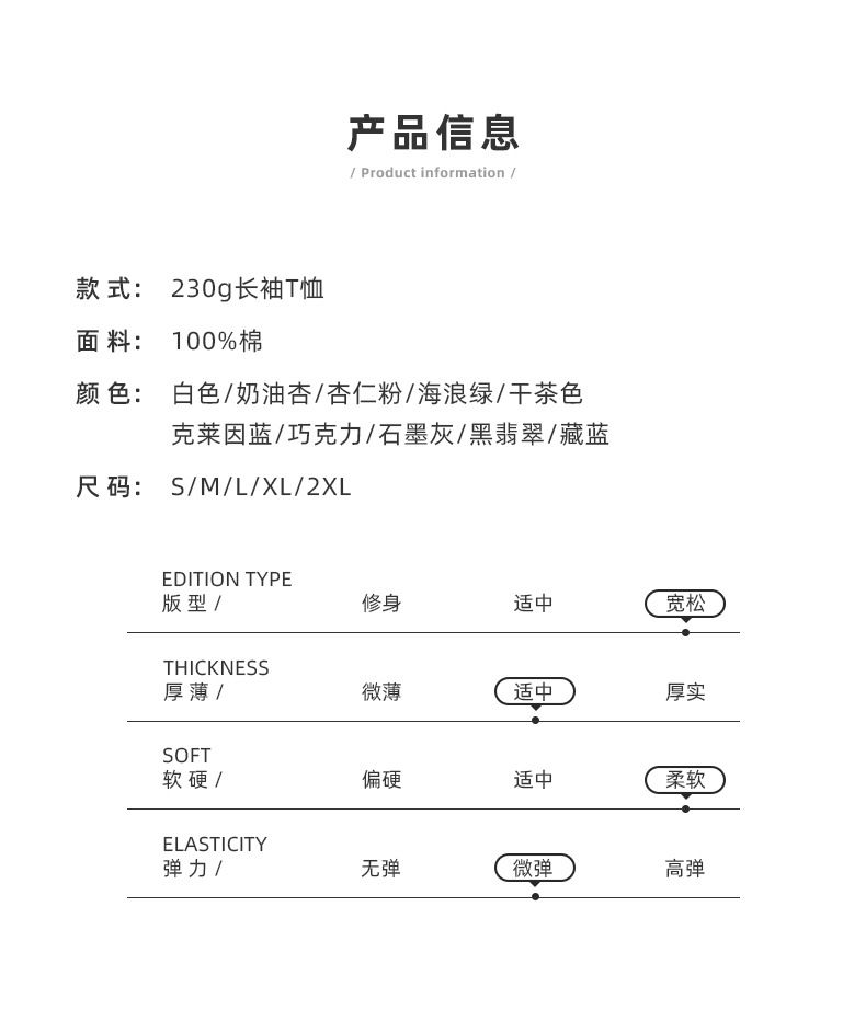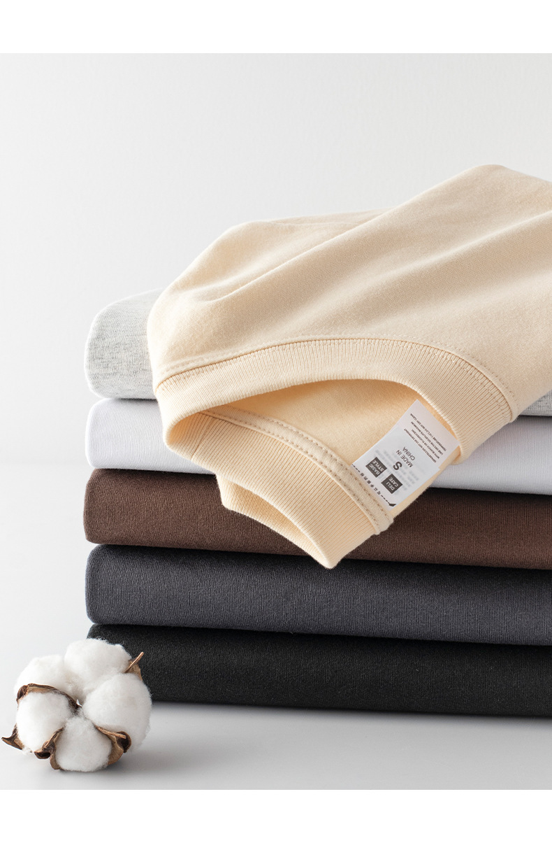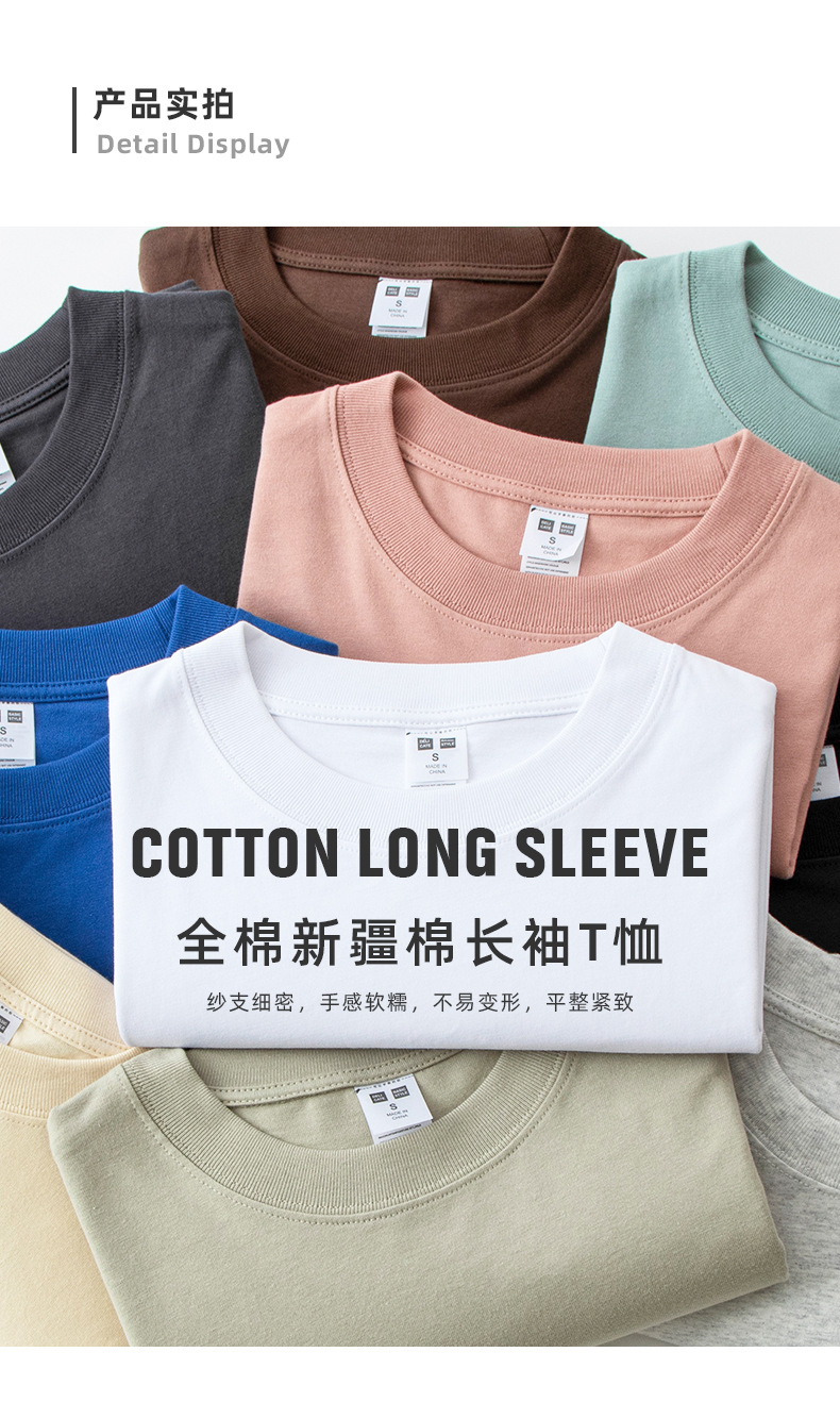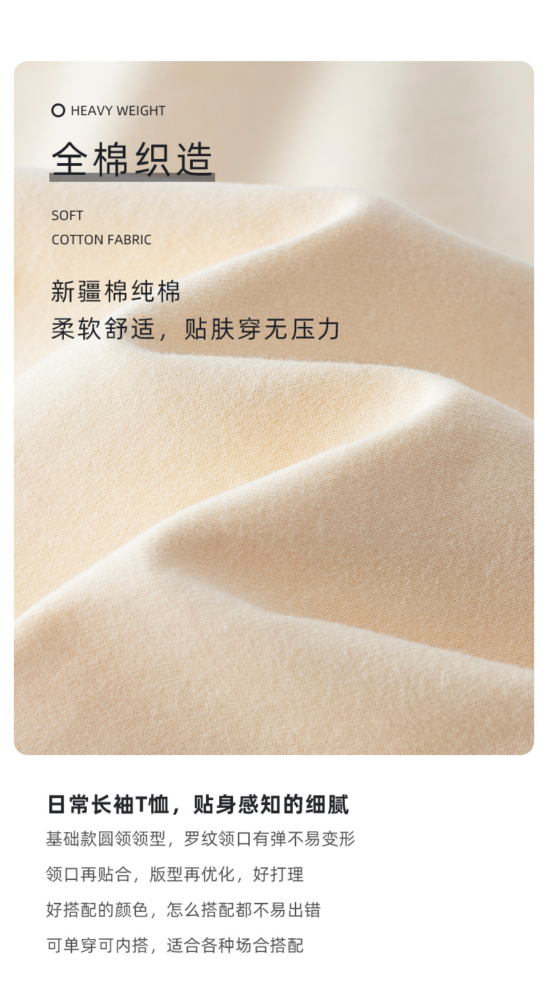 230g 긴팔 티셔츠 남성용 순면 라운드 넥 화이트 리브 라운드 넥 베이스 셔츠 일본식 십대 탑 솔리드 컬러 티셔츠스토어 가기
