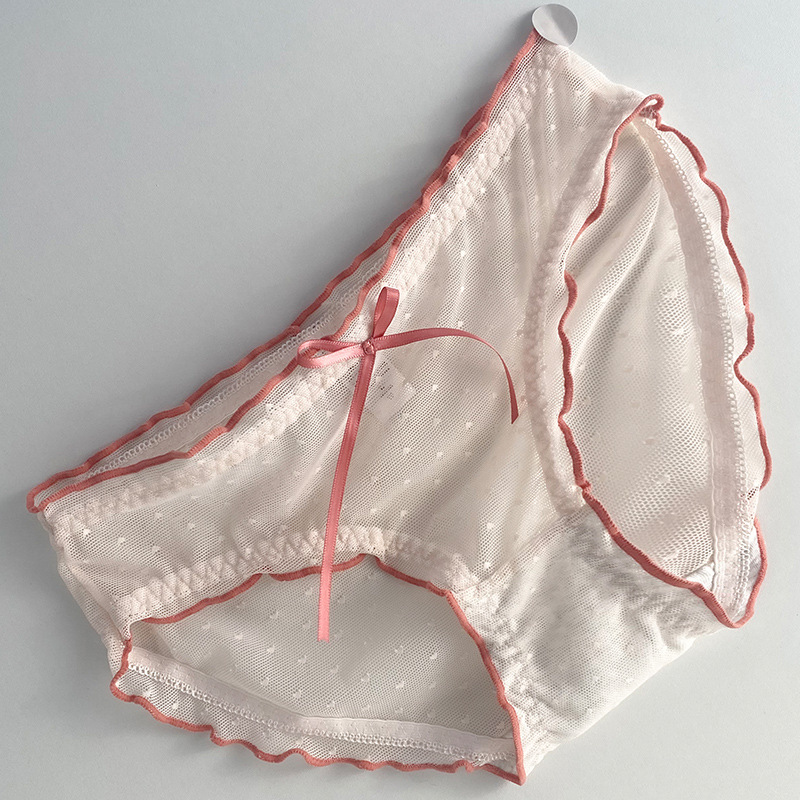 원래 여름 요정 시리즈 펄럭이는 리본 메쉬 미드 웨이스트 레이스 면 가랑이 일본식 여자 용 힙 브리프