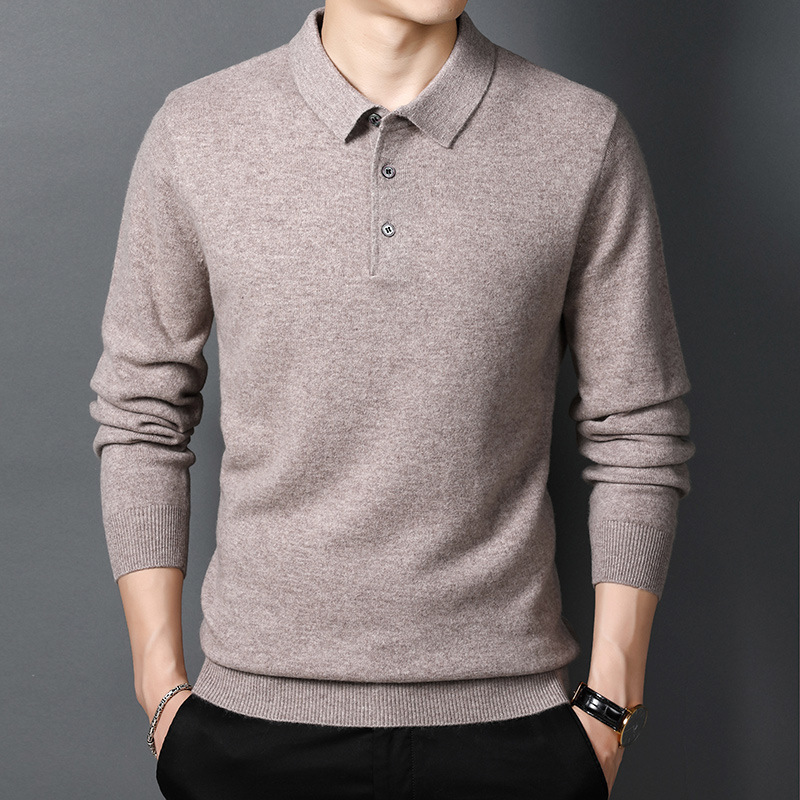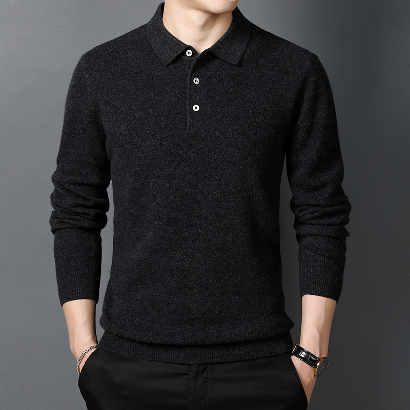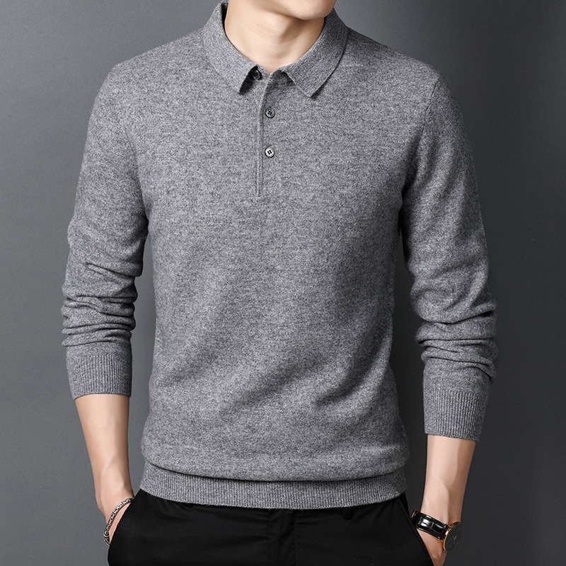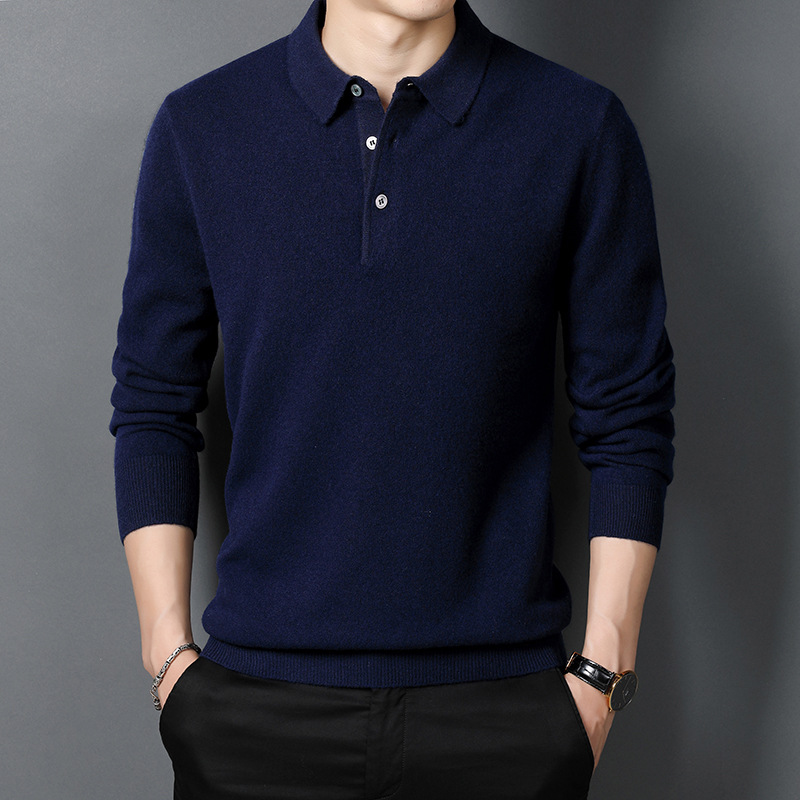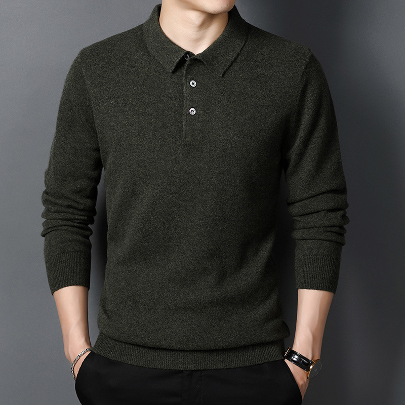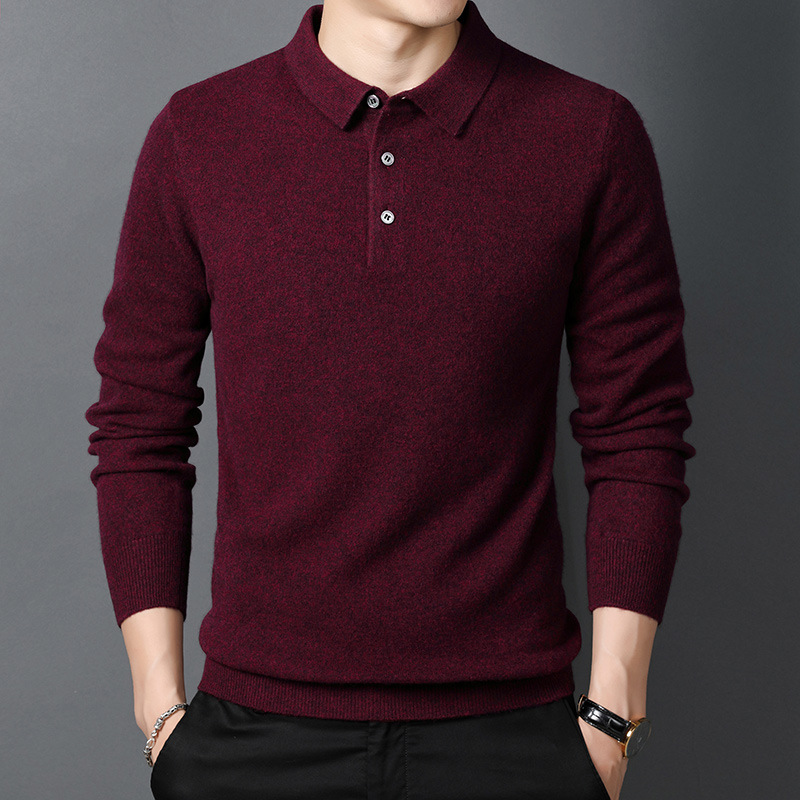 겨울용 남성용 울 스웨터, 단색 라펠 캐주얼 폴로 셔츠, 남성용 긴팔 이너웨어, 남성용 슬림핏 스웨터