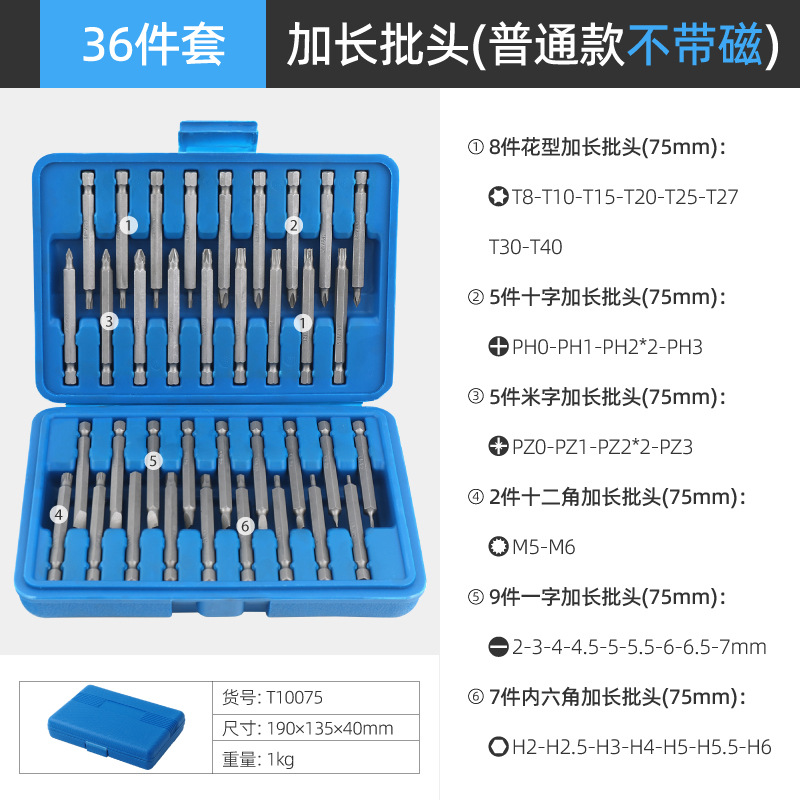 • 긴 배치 헤드 * 75mm * 크롬 바나듐 스틸 36 피스 세트