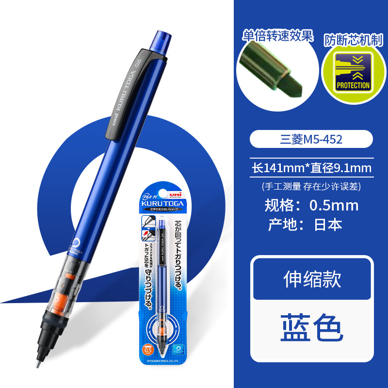일본 UNI 미쓰비시 M5-450T 학생 기계식 연필 0.5mm 이동식 리드 코어 자동 회전은 리드를 깨기 쉽지 않습니다.