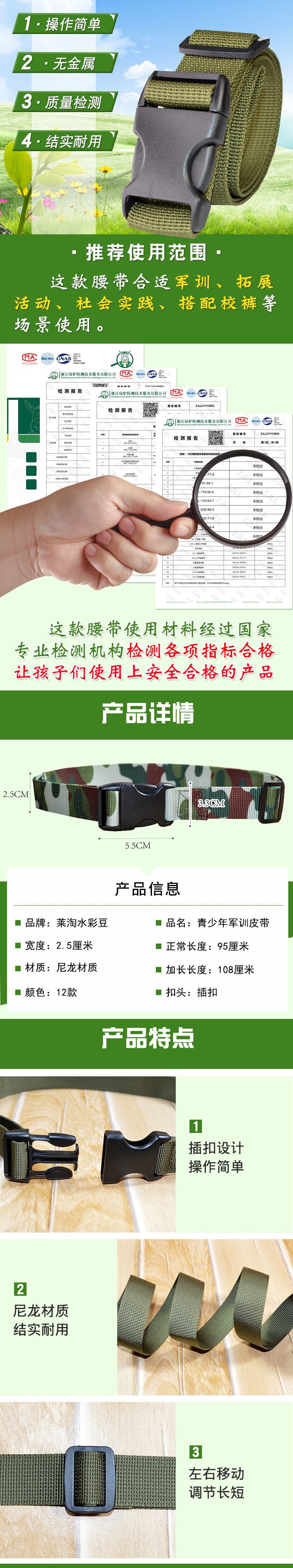 군사 훈련 바지 벨트 십대 학생 어린이 벨트 소년과 소녀 조정 가능한 버클 여름 캠프 확장 위장