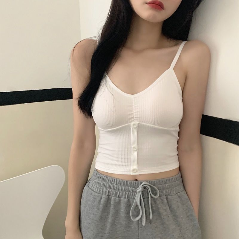 2079 # 새로운 한국 스타일 버튼 단색 슬링 순면 조끼 소녀의 이너웨어 겉옷 슬림 민소매 탑 트렌디스토어 가기