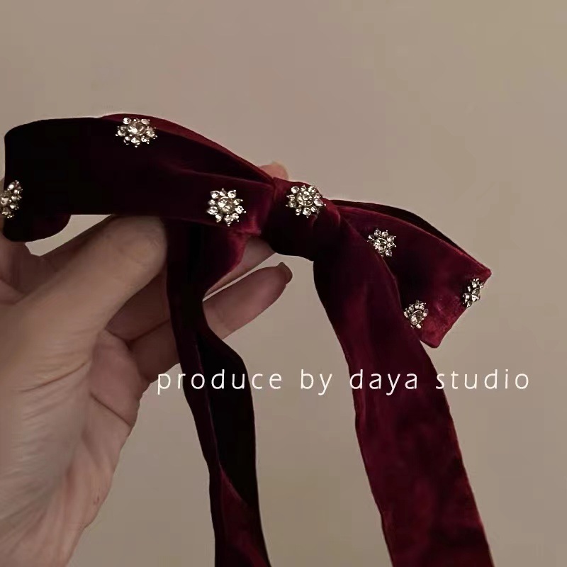술취한 유토피아 라이트 럭셔리 레트로 프랑스 지르콘 벨벳 활 리본 머리핀 고급 우아한 헤어 액세서리