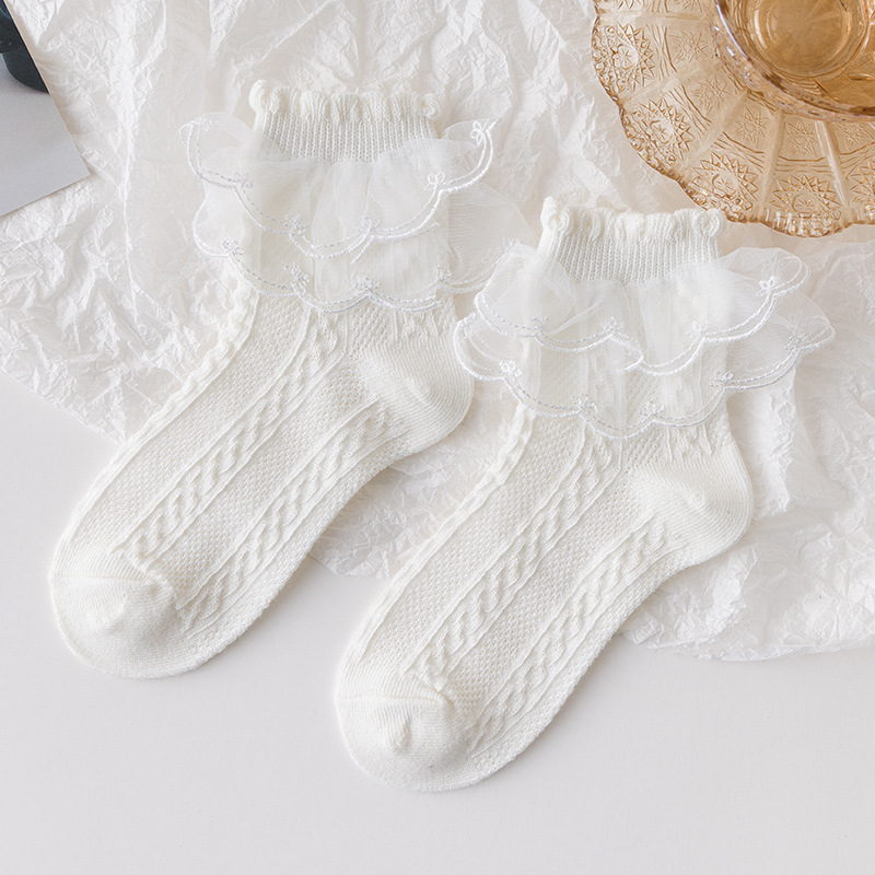 로리타 양말 여아 레이스 양말 레이스 어린이 순면 봄 가을 겨울 어린 소녀 검정색 댄스 양말 공주스토어 가기