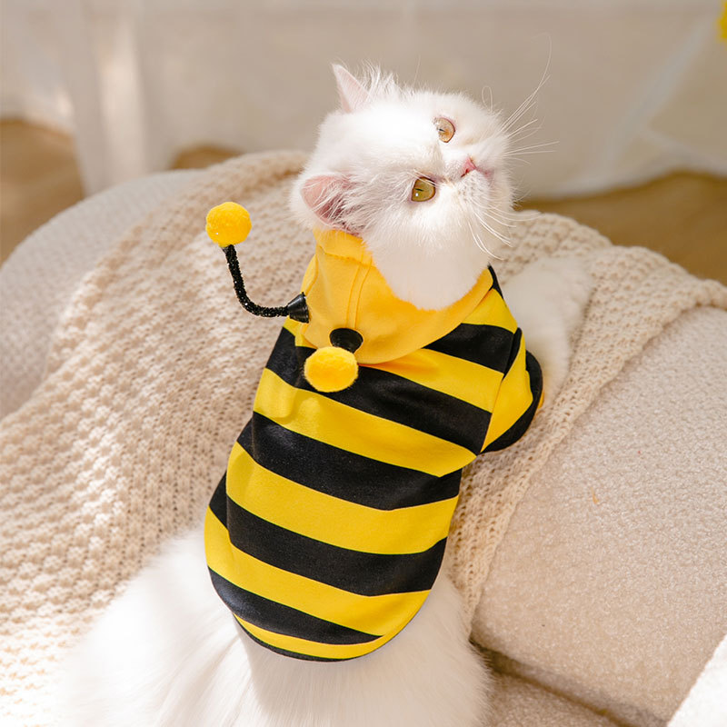 귀여운 꿀벌 변신 의상 봄과 가을 얇은 고양이 운동복 중소형 개와 새끼 고양이 개 옷 애완 동물 의류스토어 가기