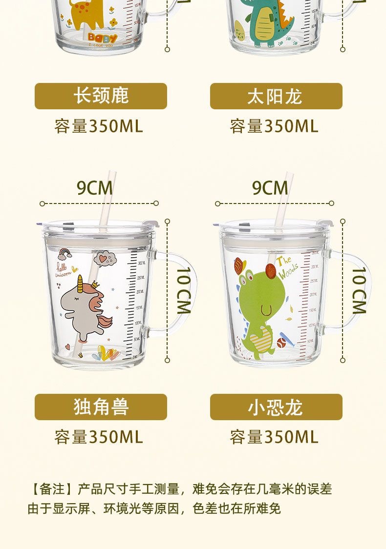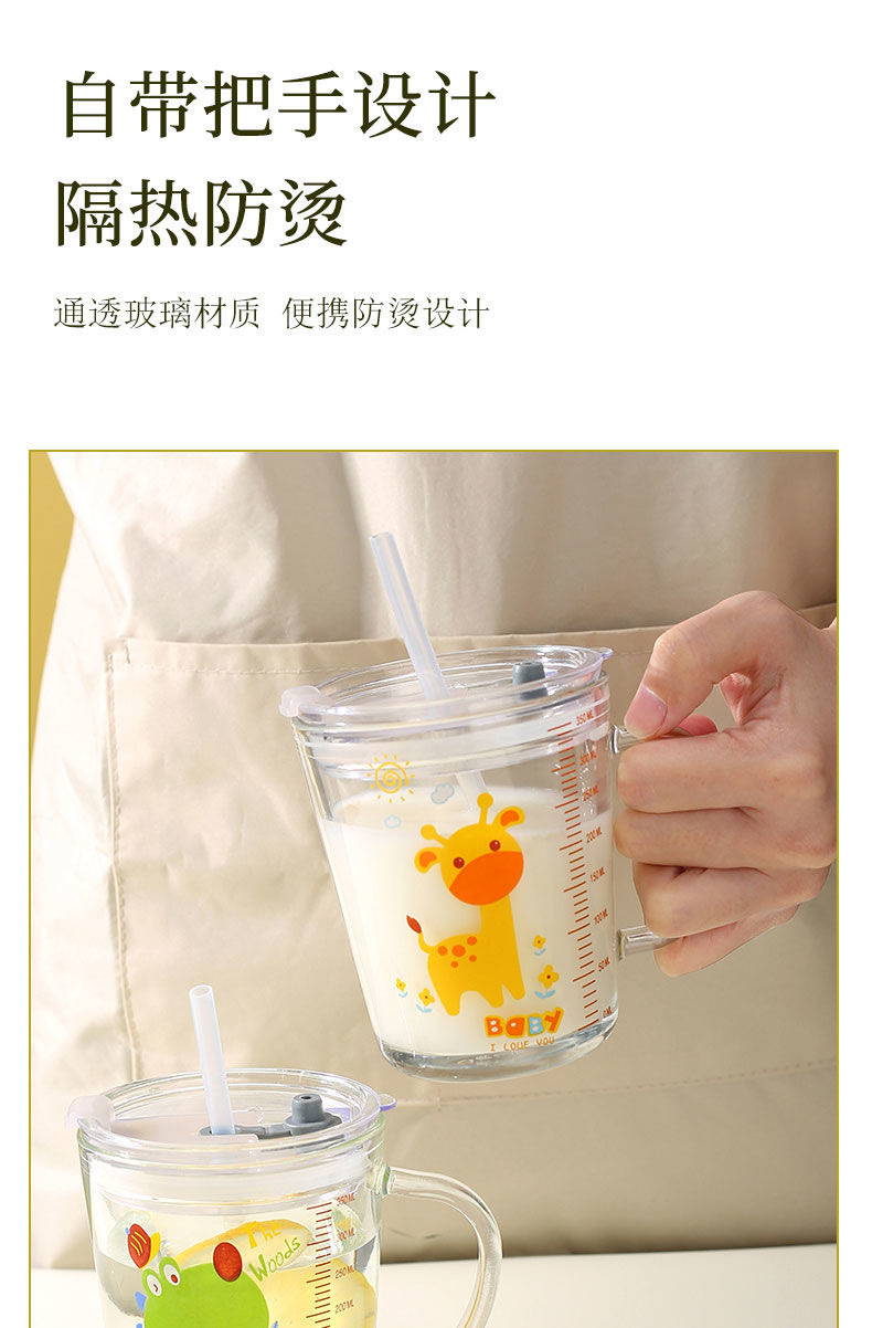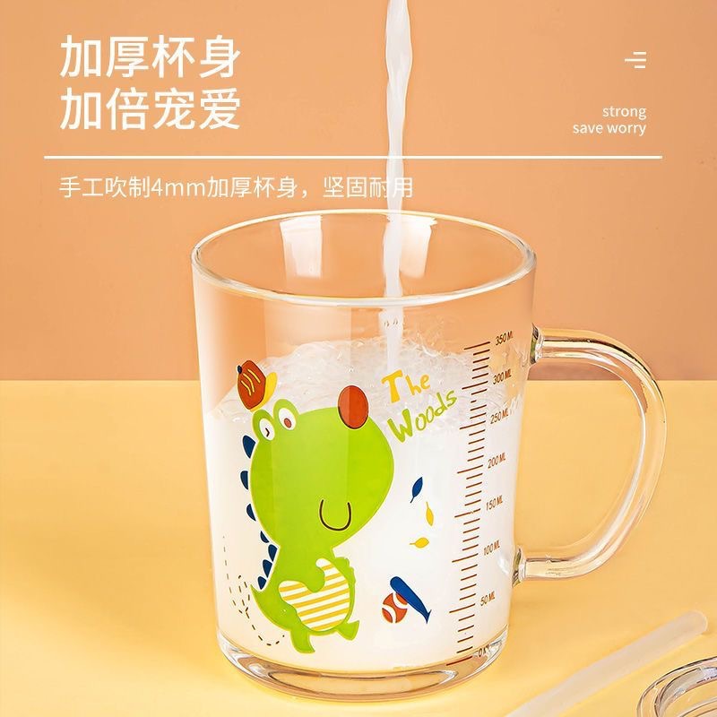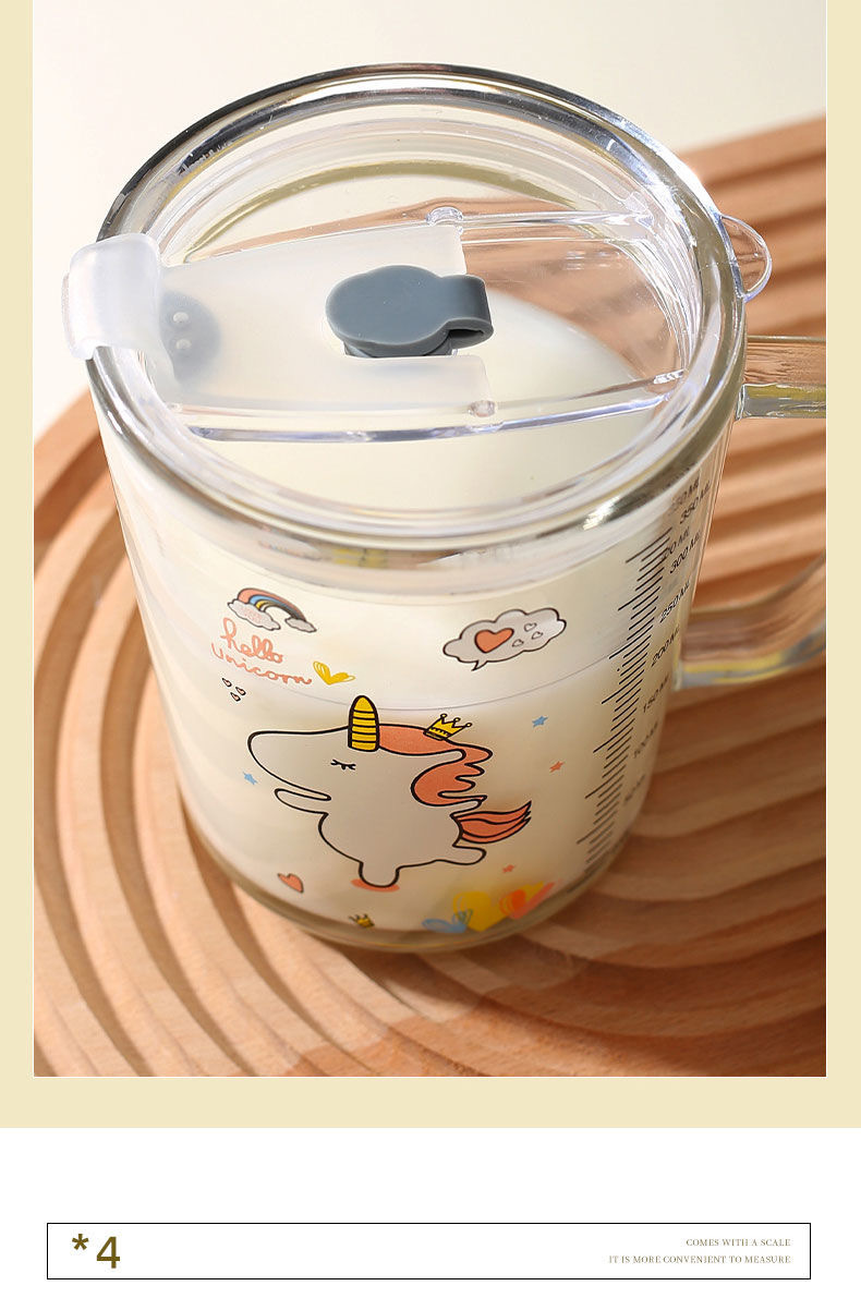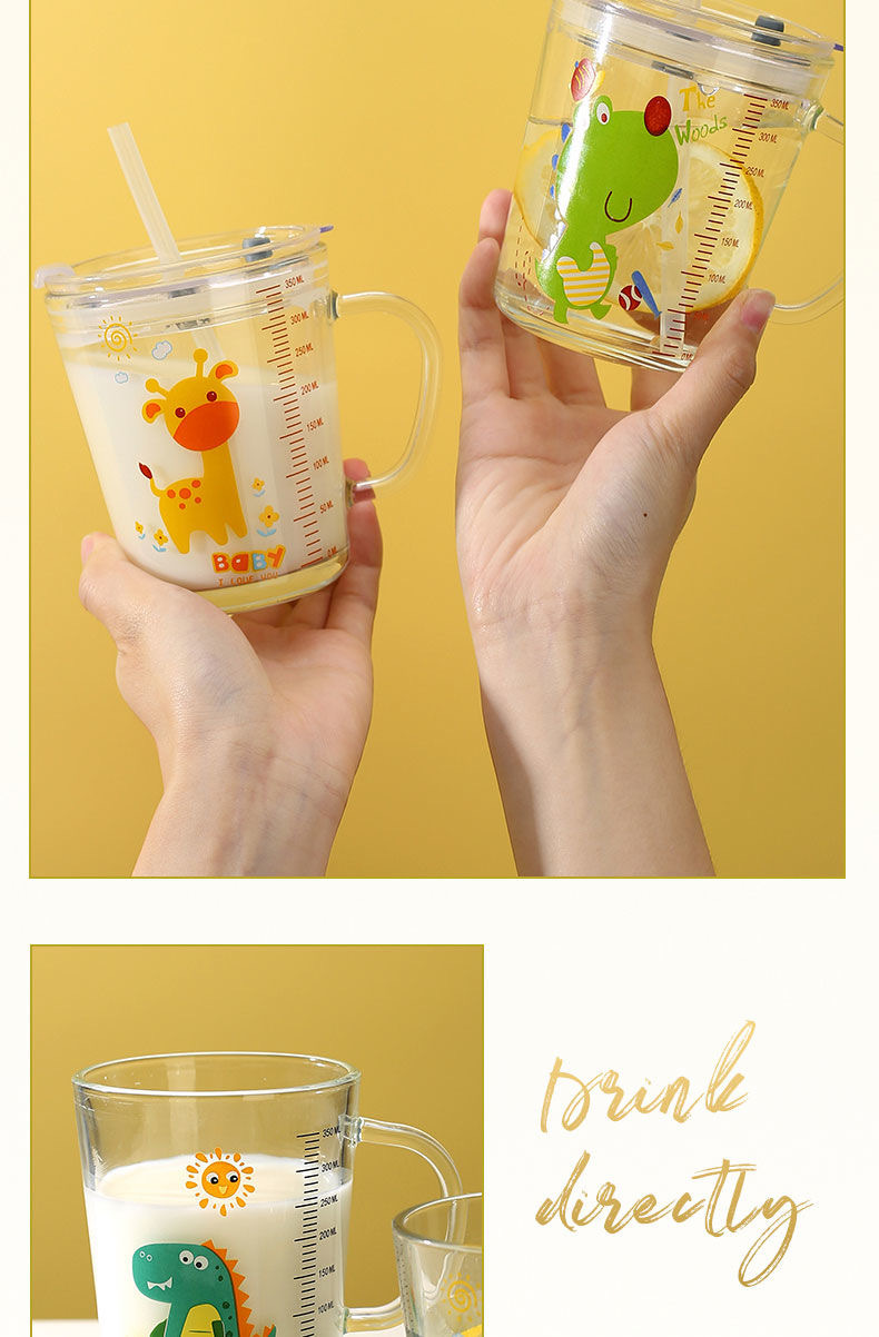 만화 유리 컵 밀짚 컵 가정용 어린이 우유 아침 식사 컵 손잡이와 창조적 인 물 컵 스케일 물 컵 손잡이 컵