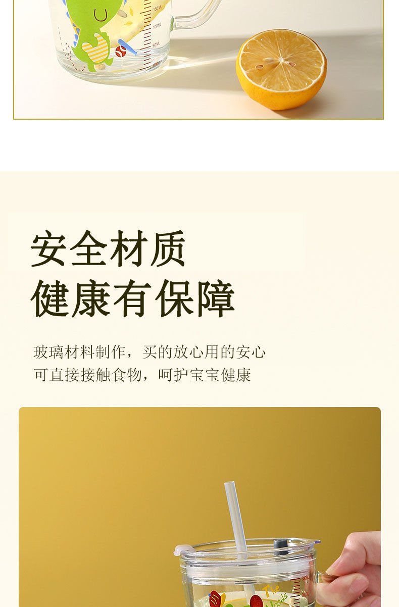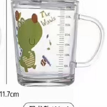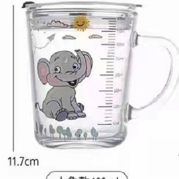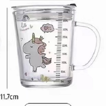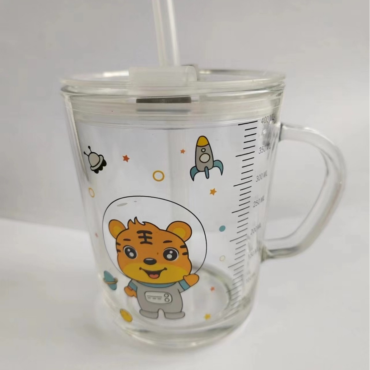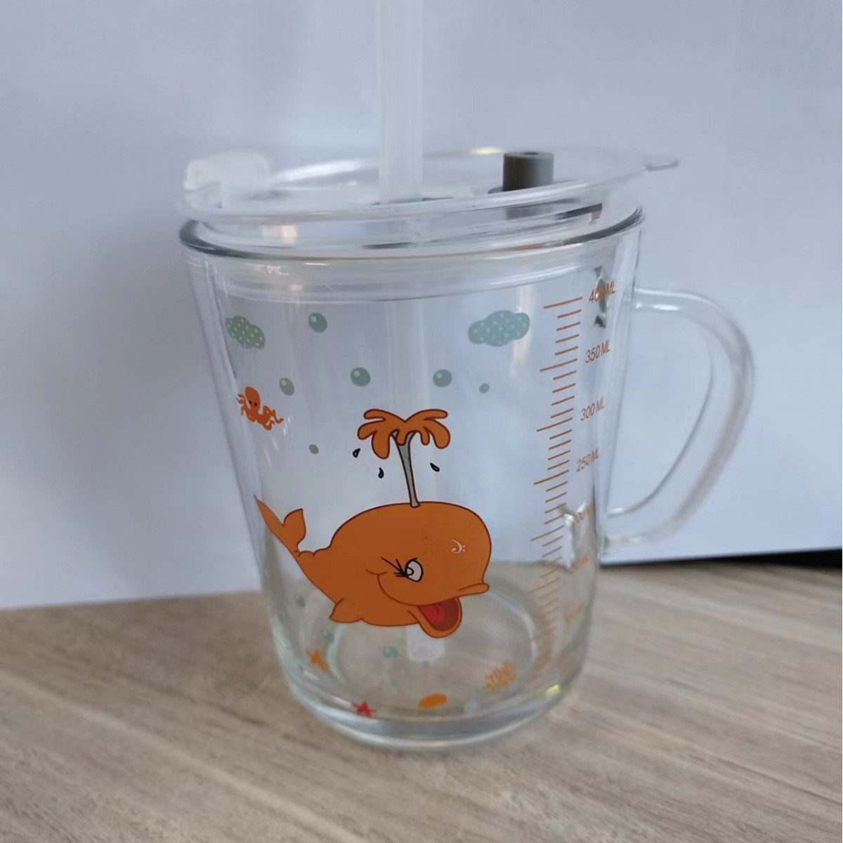 만화 유리 컵 밀짚 컵 가정용 어린이 우유 아침 식사 컵 손잡이와 창조적 인 물 컵 스케일 물 컵 손잡이 컵