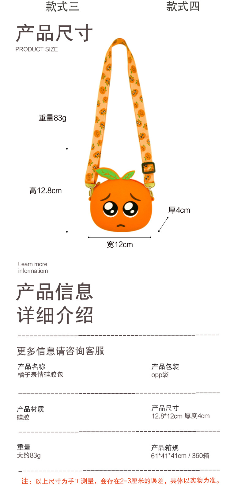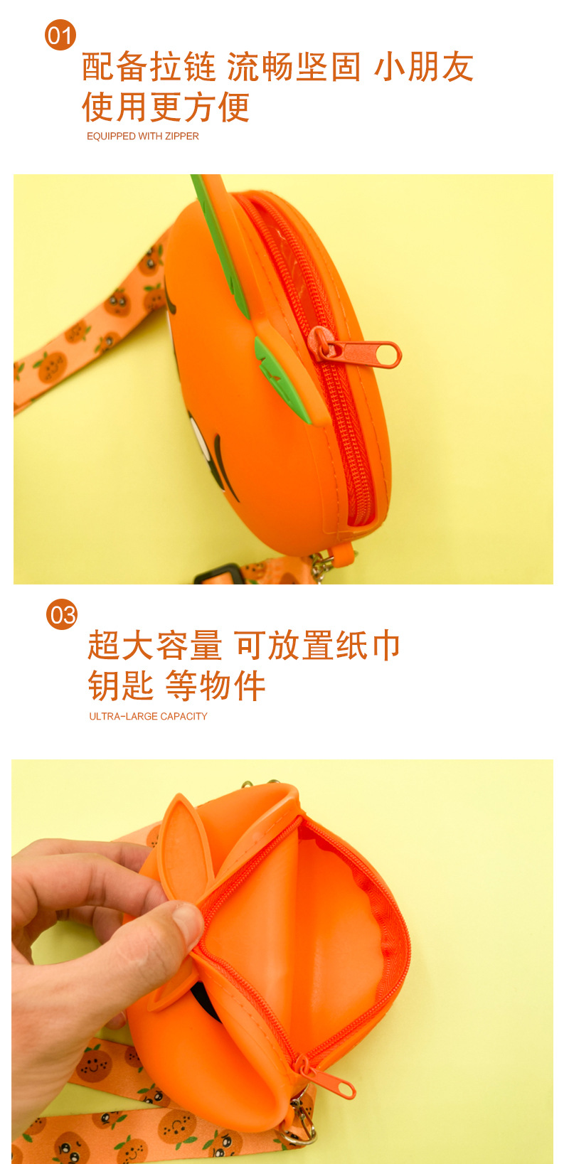 크리스마스 새로운 한국 오렌지 표현 가방 어린이 실리콘 가방 재미 휴대용 실리콘 동전 지갑