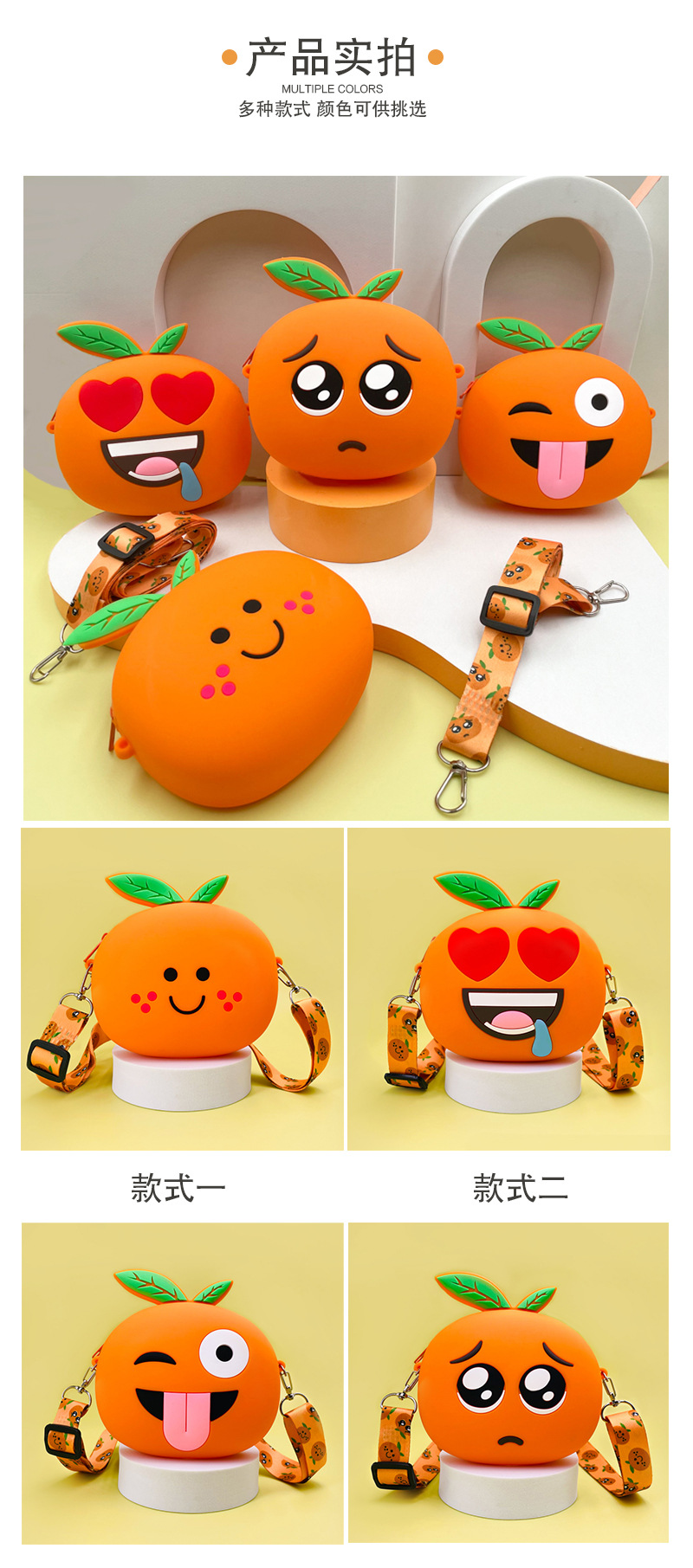 크리스마스 새로운 한국 오렌지 표현 가방 어린이 실리콘 가방 재미 휴대용 실리콘 동전 지갑스토어 가기