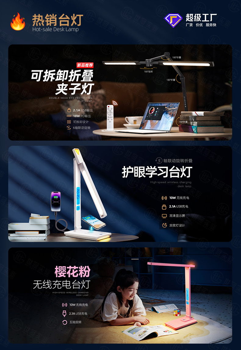새로운 LED 눈 보호 책상 램프 영구 달력 접이식 5 단 기어 10W 무선 충전 책상 램프 학습
