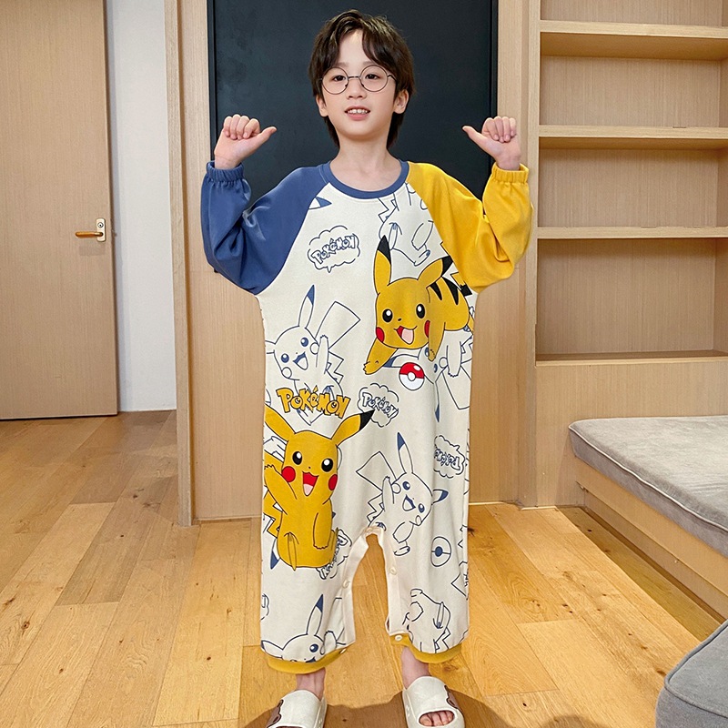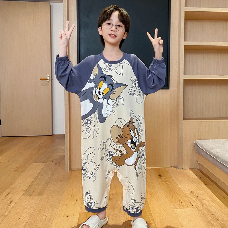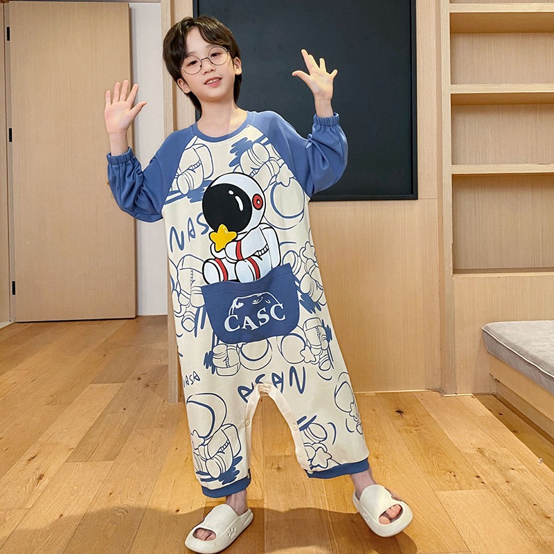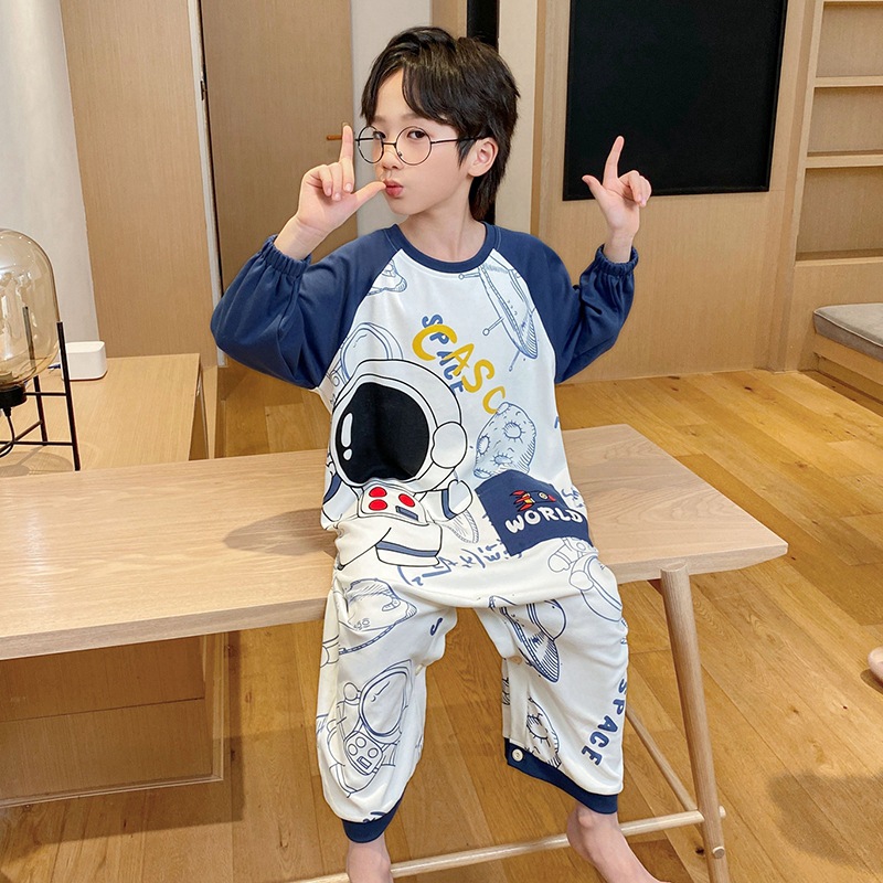 샴 어린이 잠옷 소년 여름 소년 순면 긴 소매 십대 중년 및 노인 어린이 킥 방지 에어컨 가정 옷 가을스토어 가기